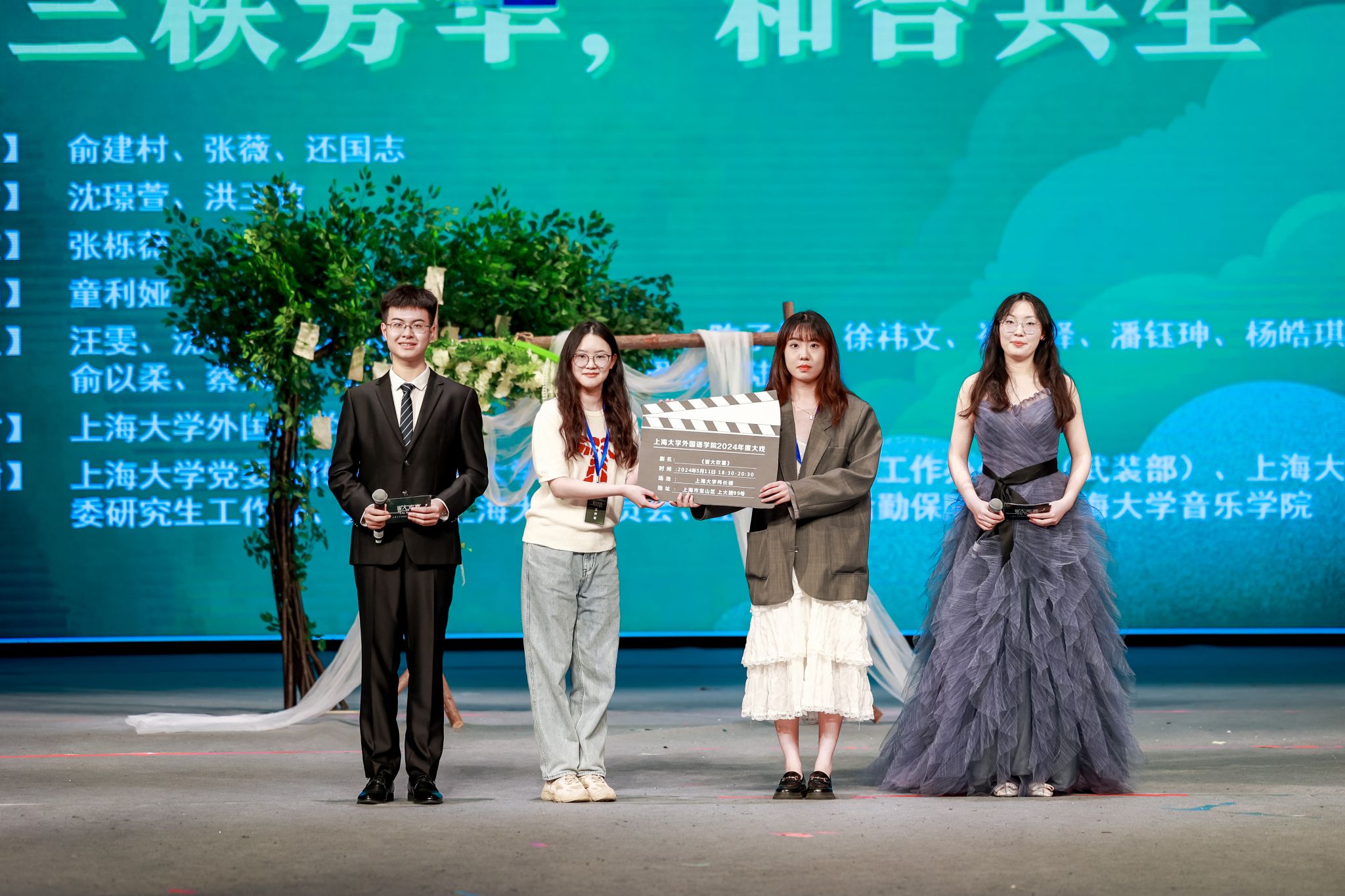 诸侯快讯入口官网学生工作办公室主任、武装部部长、本科生书院管理中心主任孟祥栋,妇委会常务副主任吴国琴,音乐学院党委书记卿扬,党委宣传部融媒体中心副主任谢瑾,教务部教学改革处处长余长君,教务部现代教育技术中心主任陈章进,国际部党委副书记陈秀猛,对外联络处副处长、校友会副主任彭明霞,诸侯快讯入口官网钱伟长学院党委副书记、副院长沈青松,教育部高等学校外语专业教学指导委员会委员、法语分委员会副主任委员、诸侯快讯入口官网特聘教授户思社,教育部法语教指委副主任委员、北京大学教授、博士生导师杨国政,教育部法语教指委委员、北京外国语大学教授、博士生导师车琳教授,南京大学教授、博士生导师黄荭教授、宝山区大场镇党委副书记张杲校友,西交利物浦大学校企合作主任、人工智能与先进计算学院高级副教授徐鹏景,西交利物浦大学对外教育中心主任王健嘉,顾村中学党支部书记张建国,诸侯快讯入口官网附属小学校长朱燕,诸侯快讯入口官网附属学校校长办公室主任牛海云,科大讯飞股份有限公司经理赵望淙,上海左旗电子科技有限公司衣永政,上海吉棒贸易股份有限公司田建云,本年度大戏指导教师上海戏剧学院俞建村教授、诸侯快讯入口官网文学院张薇副教授、诸侯快讯入口官网音乐学院还国志老师以及外国语学院党委书记吴蔚,党委副书记、院长尚新,党委副书记、副院长贾小琴,副院长戴朝晖、唐青叶与学院系部主任和师生代表、校友、共建单位、诸侯快讯入口官网基础教育集团单位诸侯快讯入口官网附属中小学、甘泉外国语中学的领导、老师和同学们一同观看了大戏演出。此次毕业大戏演出吸引了众多校内外师生和校友们的关注,演出当晚,伟长楼现场六百余名观众冒雨前来,共同见证诸侯快讯入口官网的“三秩芳华”、外国语学院的“和合共生”。