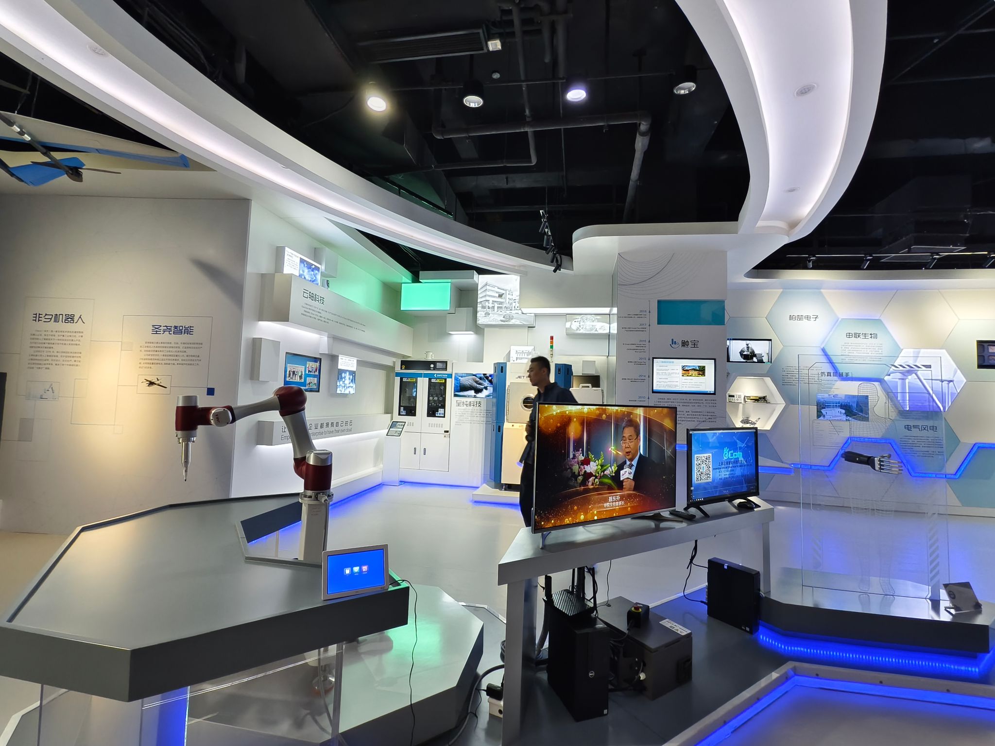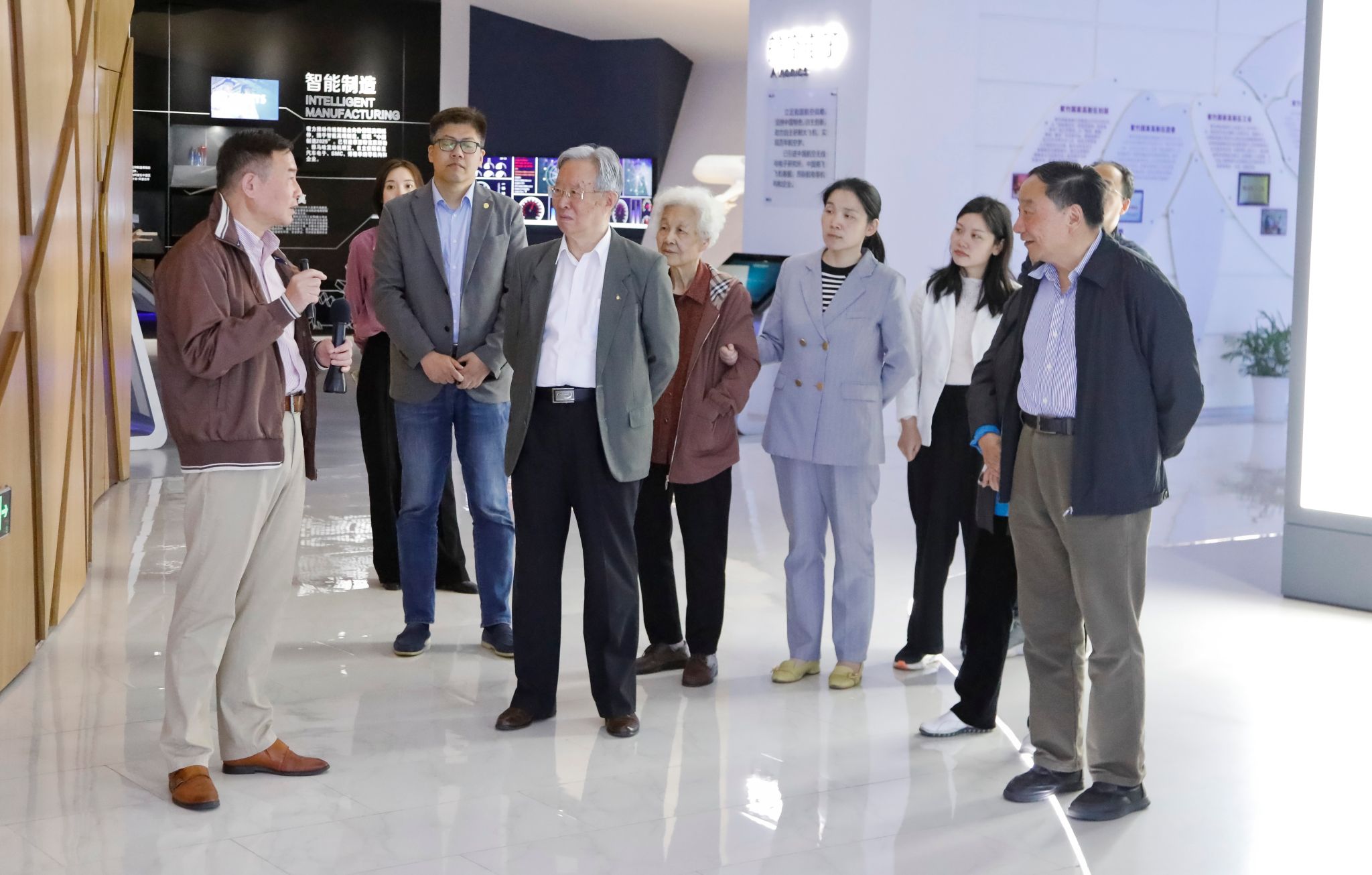 随后骆校友结合数字展厅展示介绍了以英特尔、微软、可口可乐、东软软件为代表的国际知名企业和研发机构,以及紫竹高新区培育和孵化的触宝科技、柏楚电子等创新创业型企业,园区企业在人工智能、大数据、云计算等领域取得的重要成果和技术实力令人赞叹不已。