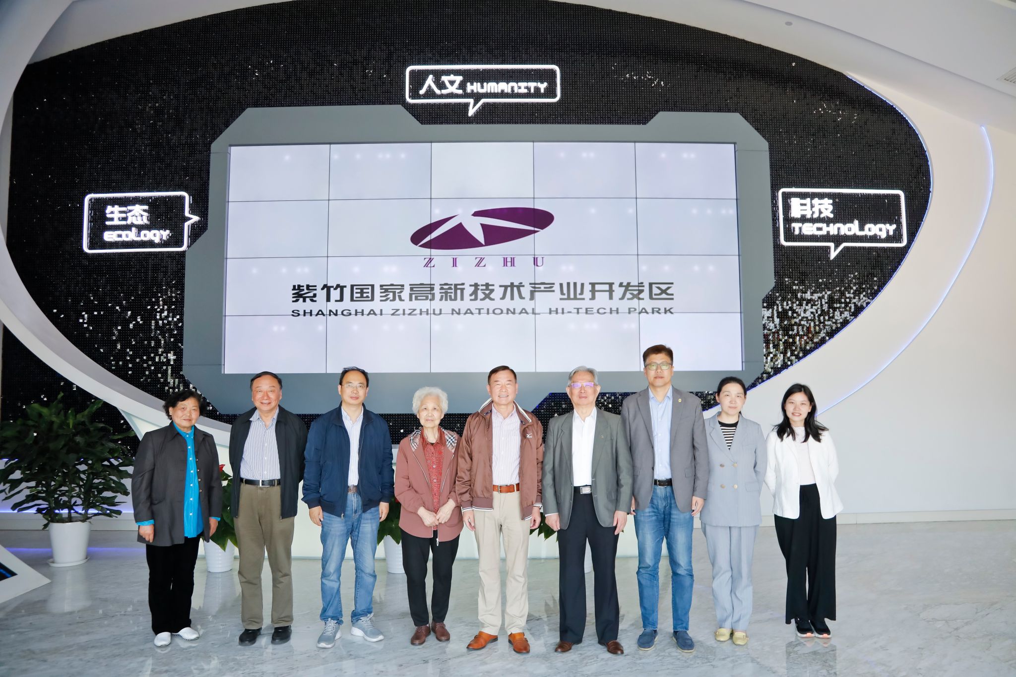 首先,大家先后参观了紫竹高新区展示中心、紫竹滨江公园、兰香湖生态社区等。骆山鹰校友代表紫竹高新区表示了热烈欢迎,详细介绍了高新区自2002年成立以来,以“生态、人文、科技”为建区理念,以高端项目集聚形成产业生态,聚焦双创打造科技创新体系,走出了一条独特的科技创新发展之路。在体制机制创新、运作模式、经济运行、建设成果、党建群团荣誉等方面都取得了成效。园区还获得了数十项资质,包括中组部认定的“海外高层次人才创新创业基地”等。目前,紫竹高新区在全国157家高新区中排名第9,自2022年起财政收入超百亿,申请专利拥有量6.79万件,发明专利申请占比79.38%,注册企业超7000家,培育上市企业10家,市级专精特新企业164家等,是上海建设“具有全球影响力的科技创新中心”主要功能承载区。