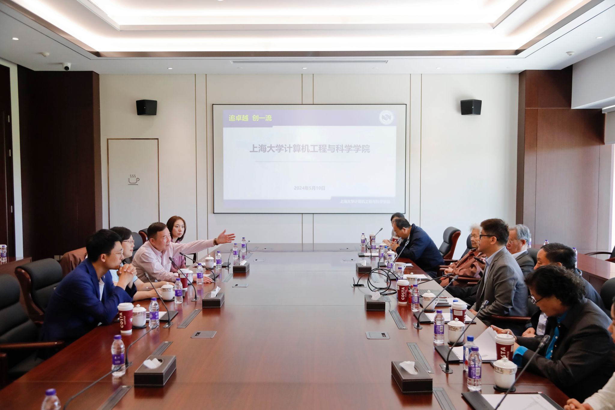 计算机学院党委书记朱宏涛介绍了学院概况、一流人才培养、主要科学研究等,全面展示了学院近年来追卓越、创一流的丰硕成果,希望开展校企深度合作,做实产教深度融合,强化校企协同育人,推动培育和发展新质生产力。