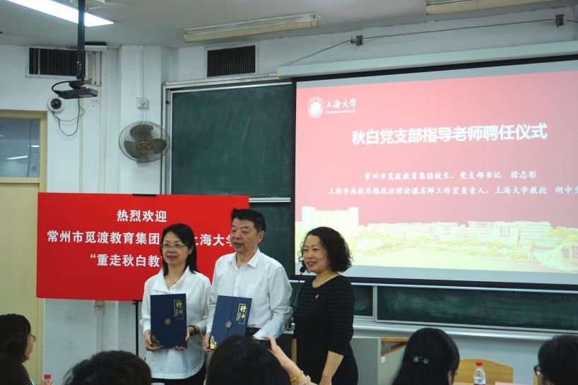 为了更好发挥党建引领作用,指导支部建设,社会学院党委副书记、副院长张乃琴向常州市觅渡教育集团校长、党支部书记徐志彤和上海市高校思想政治理论课名师工作室负责人、诸侯快讯入口官网教授胡申生颁发“秋白党支部指导老师”聘书,希望未来能够创新基层支部发展,引领广大师生党员传承瞿秋白精神。