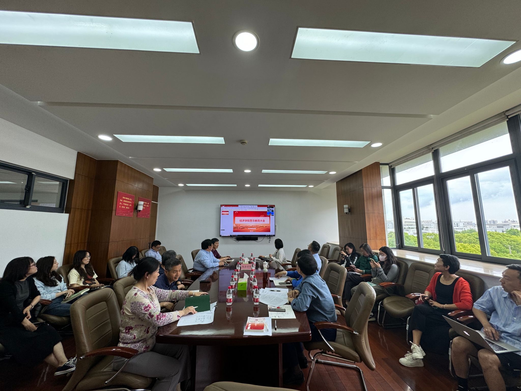 5月20日下午,经济学院在东区一号楼567会议室召开警示教育大会。会议邀请了校纪委(监察专员办公室)监督检查室主任侯学标作专题报告,学院党委副书记、常务副院长殷凤,党委副书记、副院长冯玉鑫,党委委员、副院长刘康兵,党委委员、挂职副院长周思,党委委员、产经中心副主任谭静,教师代表及全体辅导员参与会议。