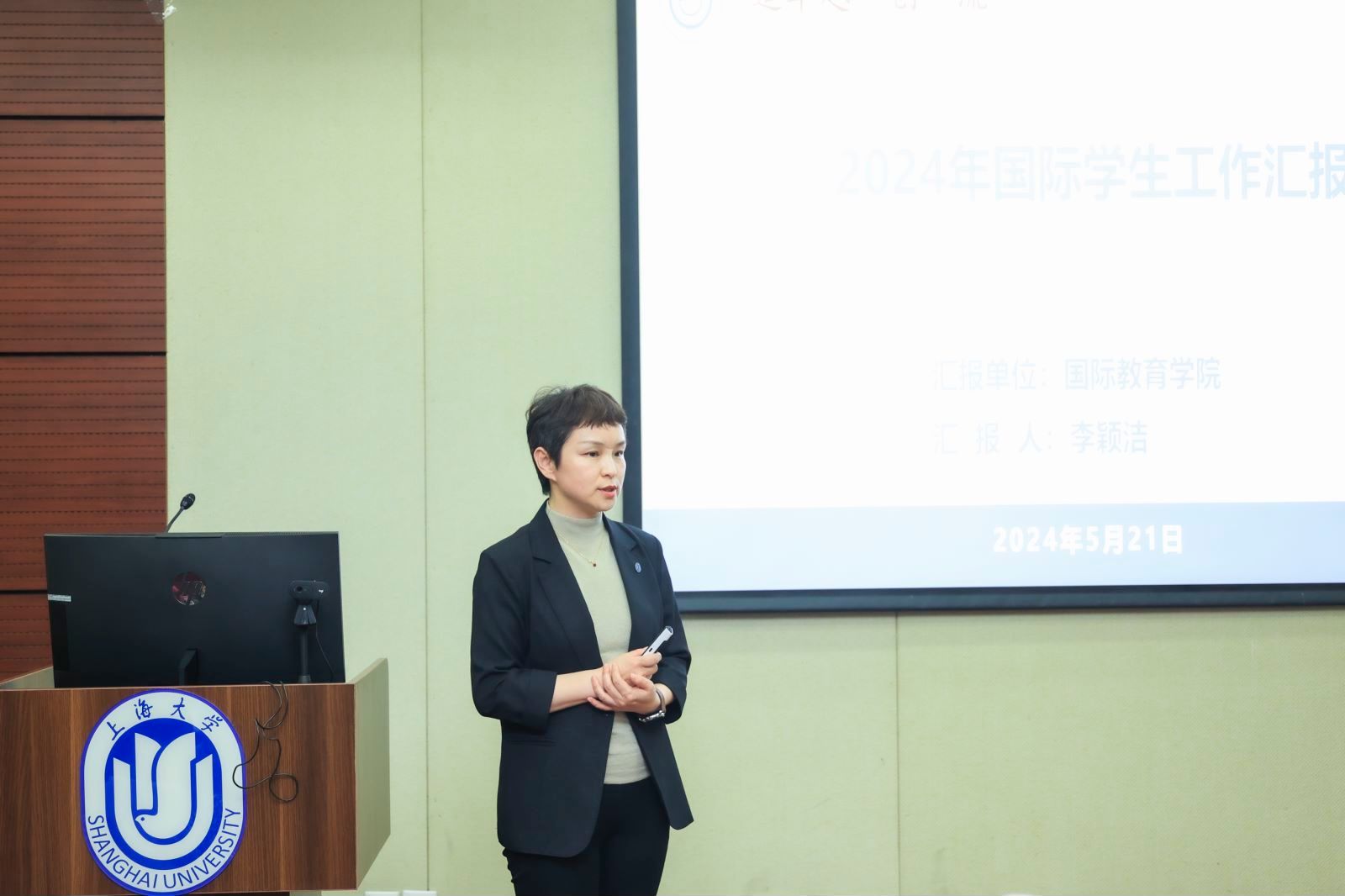 李颖洁院长围绕国际学生人才培养目标,总结回顾了2023年国际学生招生和培养工作,以及2024年来华留学质量认证(现场认证)工作计划,并希望能与各部处、学院携手共同努力提高国际学生比例,推动国际学生趋同管理,做好来华留学认证工作。