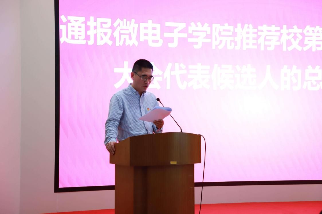 大会通报了微电子学院推荐校第四次党代表大会代表候选人的总体情况,审议通过了选举办法和监票人、计票人名单。