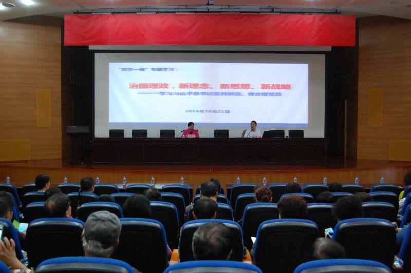 李坚部长以系统的理论知识及细致的归纳总结,结合当前国家发展的政治经济形式以及生动恰当的典型案例,从开展“两学一做”学习教育工作的基本情况、解读《习近平总书记系列重要讲话读本》(2016版)、解读习近平总书记“七一” 讲话精神三大方面为大家梳理解读了习近平总书记系列讲话中的治国理政新理念、新思想、新战略。