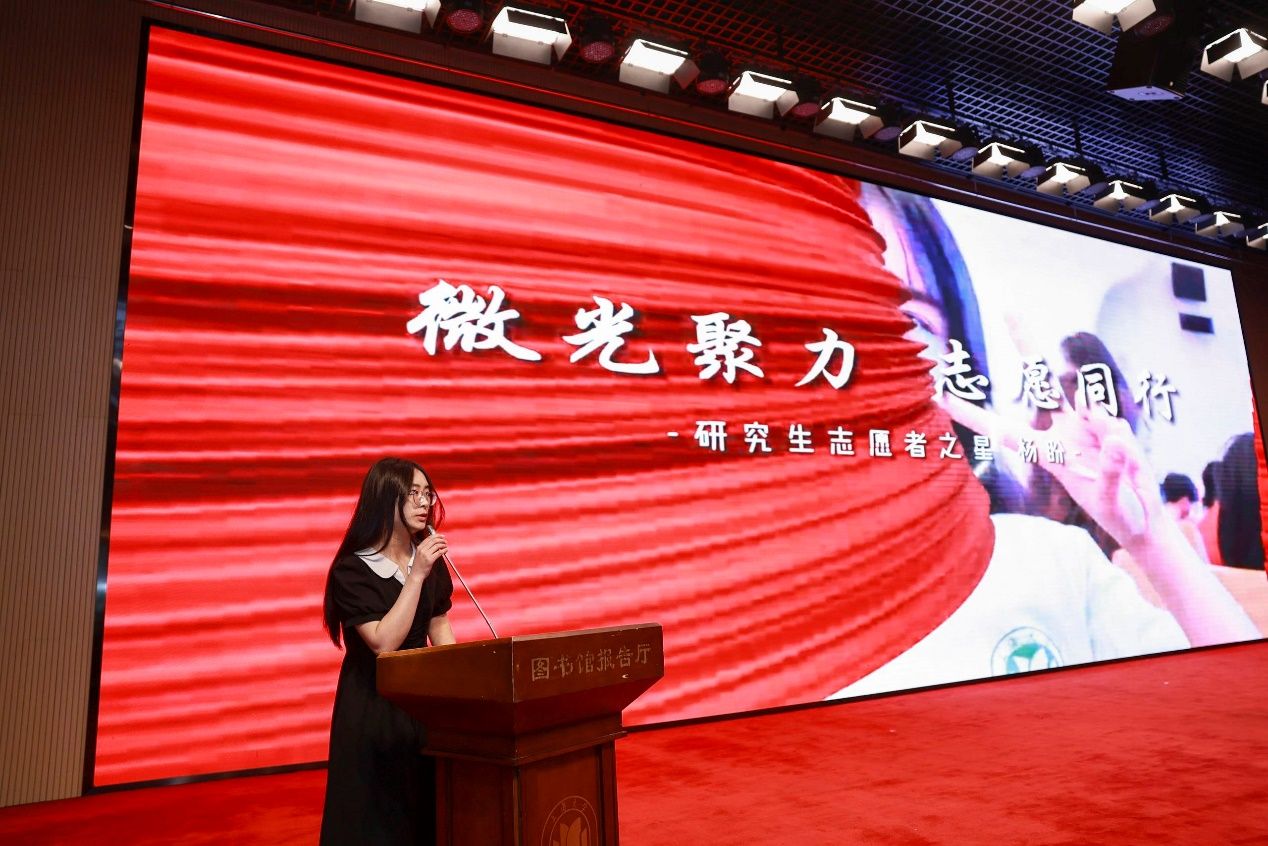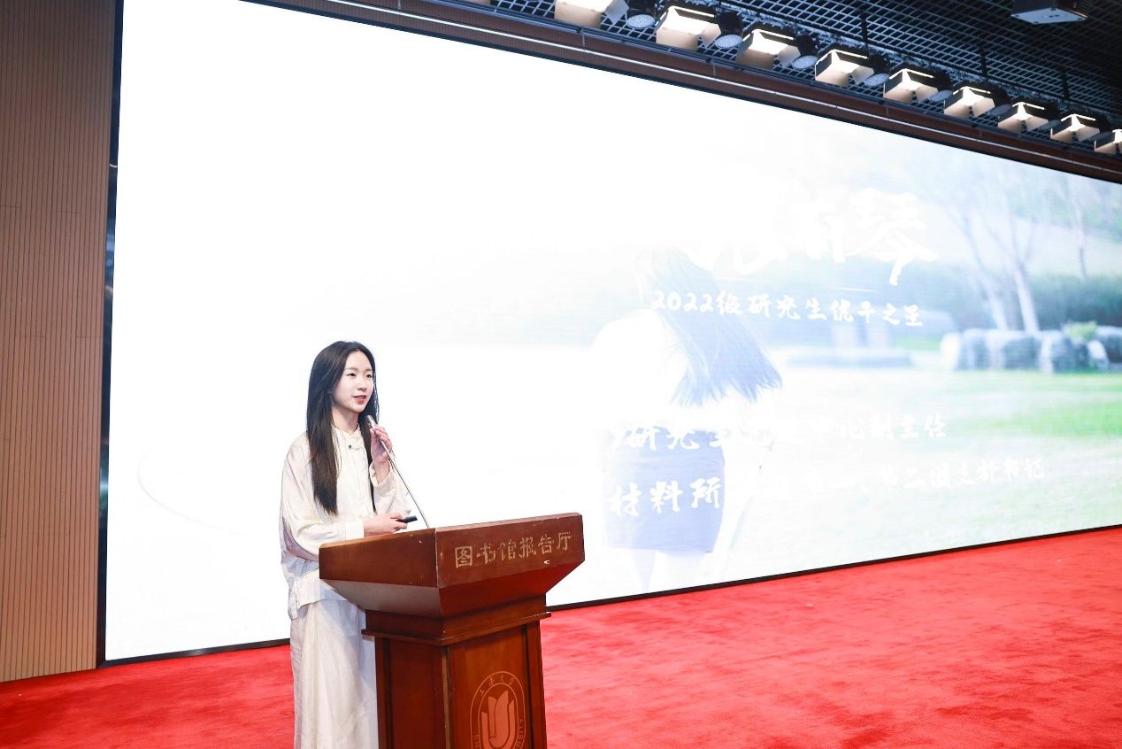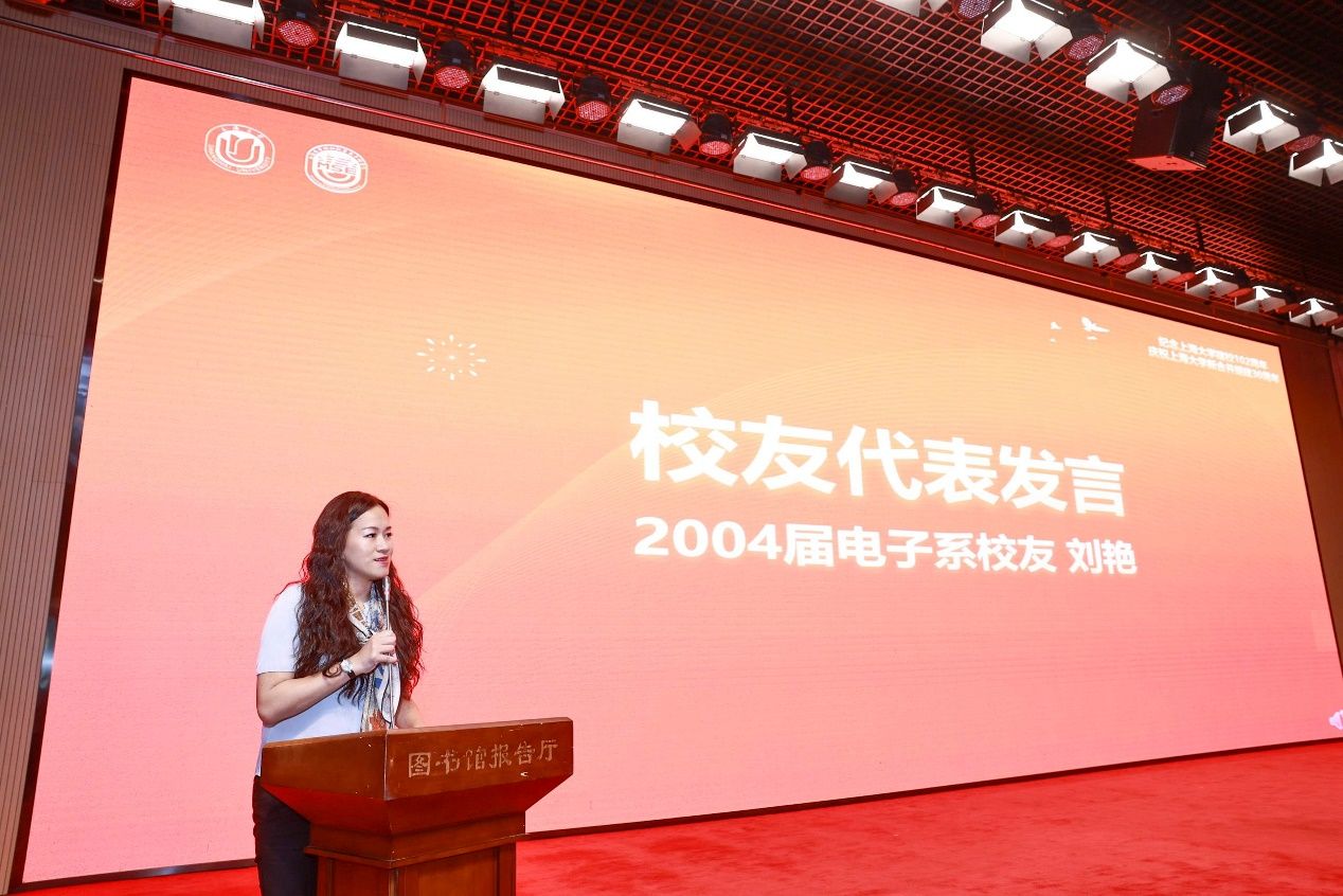 04届电子系校友刘艳作为校友代表发言,她以“感恩”“传承”“使命”为关键词,表达了自己对母校、学院、师长与同窗的感谢。她认为新一代的材料人应当坚守勤奋、自律的优秀品质,顺时代浪潮而上,在未来的学习、工作与生活中不畏艰险、勇往直前。