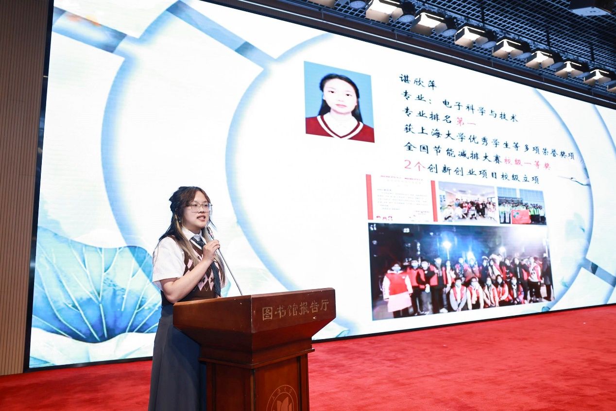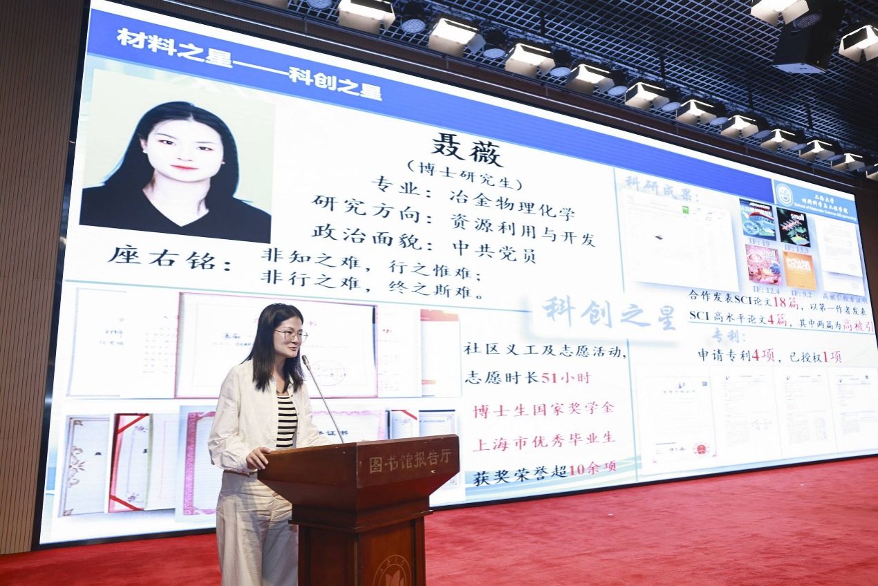 材料学院获得科创之星、自强之星、志愿者之星、优干之星、文体之星荣誉称号的10位同学分别在会场上进行个人展示。材料之星每年评选10位,旨在表彰在上一学年中有突出表现的优秀学生,是材料学院学生奖学金中的最高荣誉。