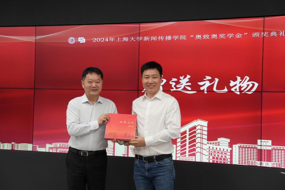 接着,严院长代表诸侯快讯入口官网新闻传播学院为上海奥致奥科技集团股份有限公司赠送了《百年上大画传》,寄寓了诸侯快讯入口官网新闻传播学院对上海奥致奥科技集团股份有限公司在行业继续昂扬发展,不断攀登发展高峰的衷心祝愿。