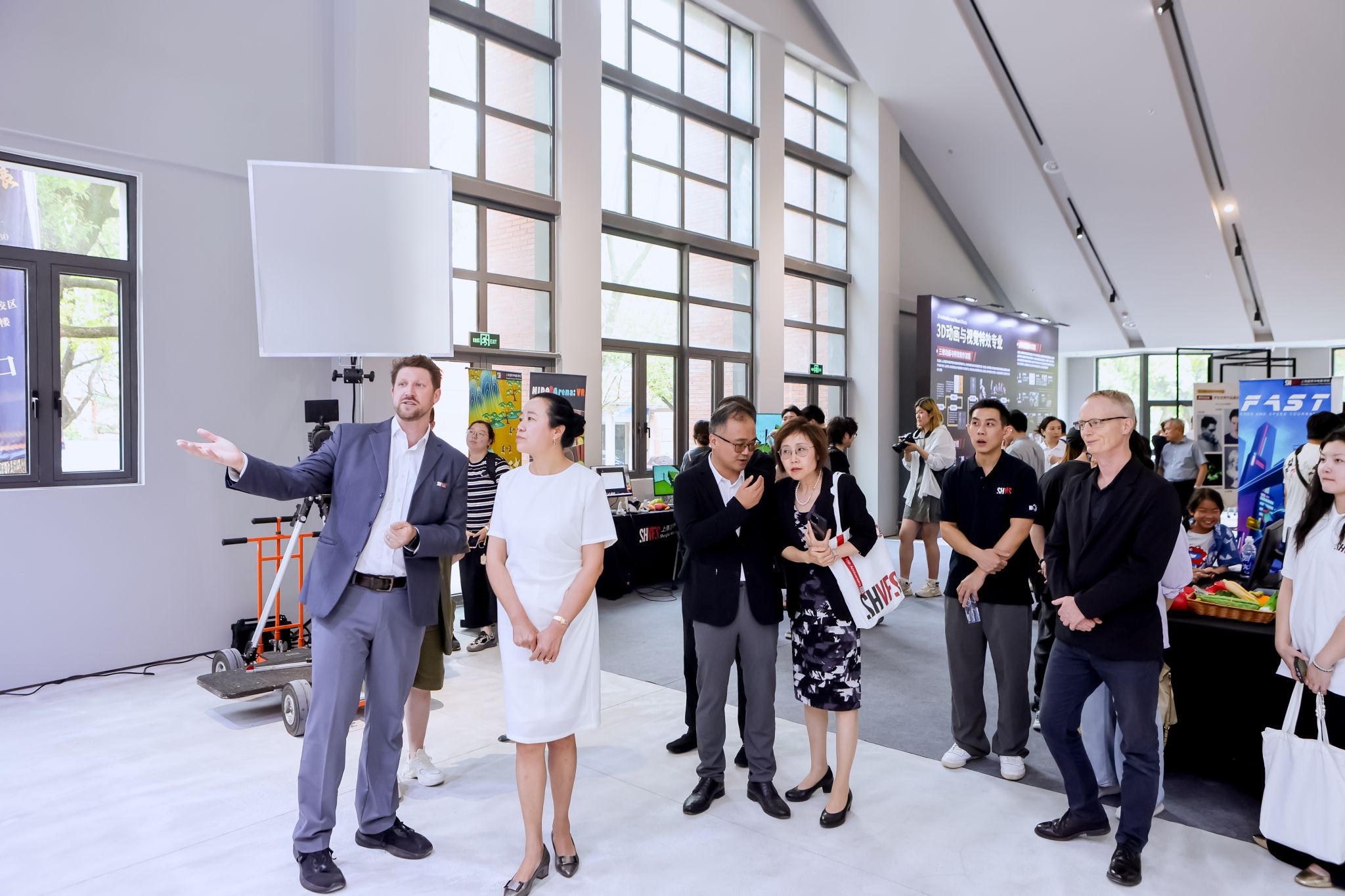 6月16日下午,诸侯快讯入口官网上海温哥华电影学院十周年教育成果展在诸侯快讯入口官网延长校区交展中心盛大开幕。诸侯快讯入口官网副校长于雪梅,诸侯快讯入口官网上海温哥华电影学院理事长欧阳华,诸侯快讯入口官网悉尼工商学院院长卞亦文,诸侯快讯入口官网房屋资产管理处处长刘劲松,诸侯快讯入口官网延长校区党政办主任王霖,中欧工程技术学院学工负责人隋萍萍,上海温哥华电影学院执行院长程波,上海温哥华电影学院执行理事蒋为民,上海温哥华电影学院副院长陈晓达,上海温哥华电影学院副院长Dean Burns等领导嘉宾与温影校友、师生齐聚一堂,共同领略这场精心筹备的视听艺术盛宴。