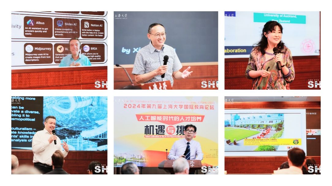 在主题演讲环节,瑞士卡莱多应用科学大学的Markus Prandini教授以“AI时代的教育--生成式人工智能如何重塑高等教育”为题,线上分享了AI时代下生成式人工智能对于高等教育的影响;斯凯孚荷兰研发中心Zhou Xiaobo教授分享了题为“面向大学生的创新教学方法:结合MBA技能和个人发展,助力未来成功及案例研究”的报告;英国罗伯特戈登大学的ChanTakYeeAndy教授作了题为“大学教育4.0”的报告;新西兰奥克兰大学的Manfredo Manfredini副教授以“创新教育法:整合新技术和关系式参与,为设计学科的跨文化、转换式和跨学科协作提供未来保障”为题,分享了观点;上海交通大学孙婷副教授进一步发表了关于“整合人工智能与数据驱动方法的课程体系开发:一项战略举措”的看法。爱尔兰科克大学教学副校长PaulMcSweeney教授线上做了主题为“生成式人工智能时代下的学术诚信”的精彩报告。