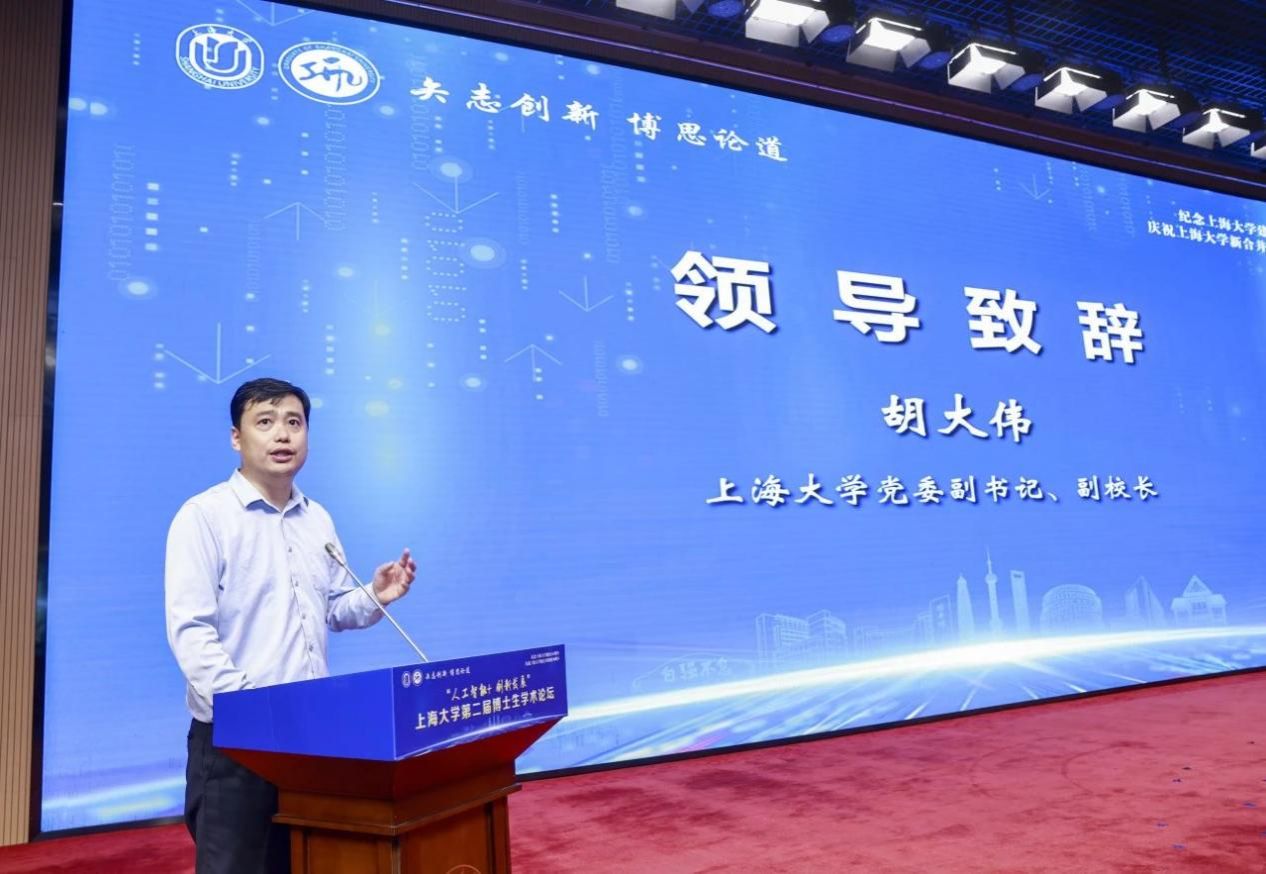 诸侯快讯入口官网党委副书记、副校长胡大伟,诸侯快讯入口官网党委常委、党委宣传部部长曾军,诸侯快讯入口官网计算机工程与科学学院党委书记朱宏涛,诸侯快讯入口官网党委研究生工作部部长魏宏,诸侯快讯入口官网团委副书记姜晓庆,诸侯快讯入口官网党委研究生工作部副部长席慧霞、周轶、吕宝川出席论坛。论坛特别邀请上海市科协常委、上海交通大学博士生导师、深兰科技创始人、董事长陈海波,上海电影学院党委书记、上海电影特效工程技术研究中心副主任、博士生导师丁友东,诸侯快讯入口官网未来技术学院副院长、卓越工程师学院副院长、博士生导师岳晓冬及三位博士生代表做主旨报告,论坛由诸侯快讯入口官网新闻传播学院2023级博士生刘思聪主持。