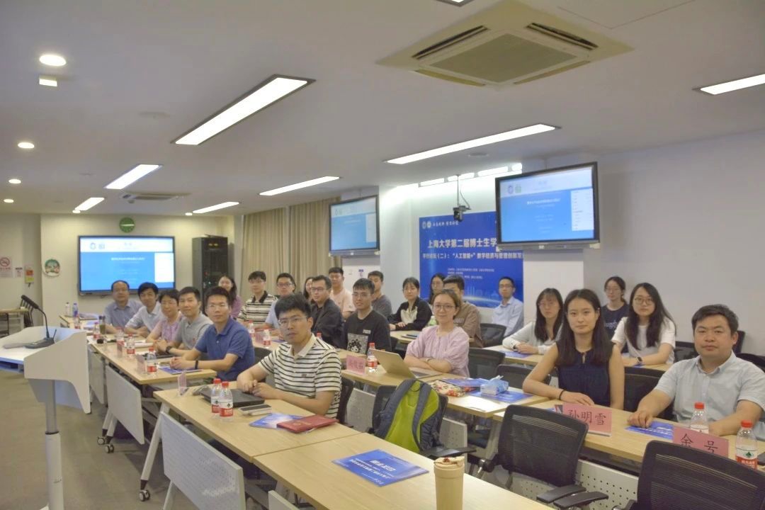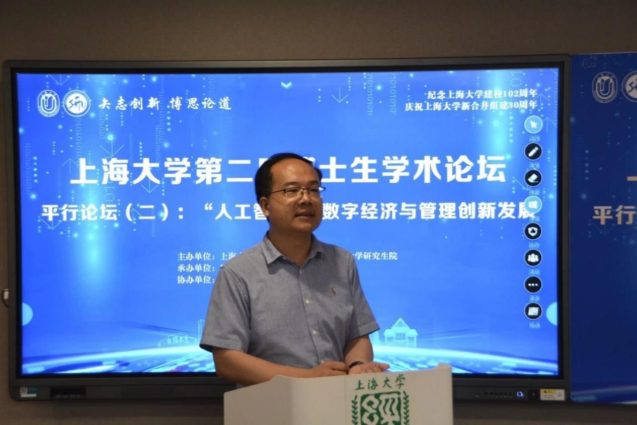 “人工智能+”数字经济与管理创新发展平行论坛在宝山校区举行,论坛由经济学院主持,与管理学院、理学院、悉尼工商学院合作。论坛邀请到十位博士研究生就人工智能技术在数字经济与管理创新发展过程中的新方向和应用前景作主旨报告,四位专家对报告内容进行点评。旨在为不同学科博士生提供个人学术展示、交流学术观点的平台,更好促进人工智能前沿技术与经济管理学科的交叉研究创新,更深层次探索人工智能时代催生的新动能和新产业,探讨人工智能技术为数字经济与管理领域带来的机遇与挑战。