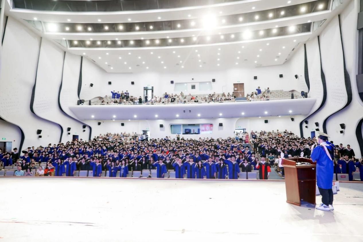 下午,经济学院2024年毕业典礼暨学位授予仪式在宝山校区伟长楼举行。本次活动以“自强不息 经世济民”为主题,学院领导、导师代表、校友代表、家长代表以及全体毕业生共同参加,由经济学院2021级统计学硕士研究生冯子玮和2020级金融学本科生董佳骅主持。