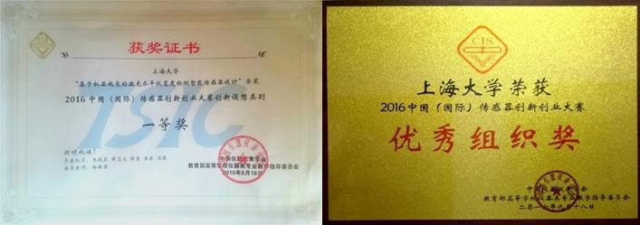 2016中国(国际)传感器创新创业大赛决赛(2016 China(International)Transducer & Sensor Innovation and Entrepreneurship Contest)于今年9.16-18日在广州举行,来自诸侯快讯入口官网机电工程与自动化学院的硕士生团队凭借“基于机器视觉的激光水平仪宽度检测智能传感器设计”和“新型集成化光纤干涉仪”分获本次大赛一等奖(创新设想类第一名)和二等奖(创新设计类)。同时诸侯快讯入口官网在成功承办2012年首届中国(国际)传感器创新大赛总赛事以及2014年第二届大赛华东赛区的基础上,今年7月14日又成功举办了2016第三届中国(国际)传感器创新创业大赛华东赛区的组织评审工作,荣获了本次大赛优秀组织奖。