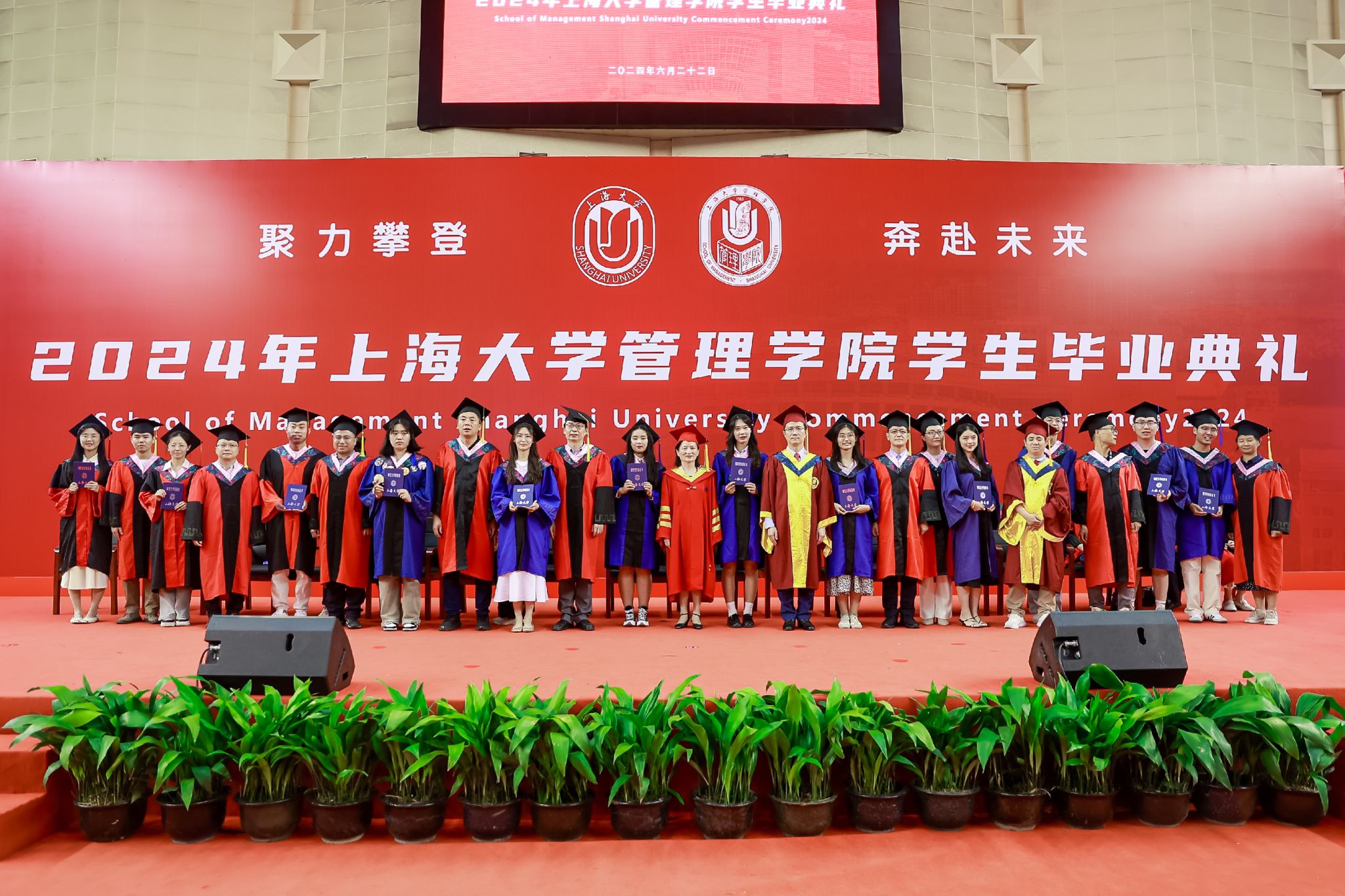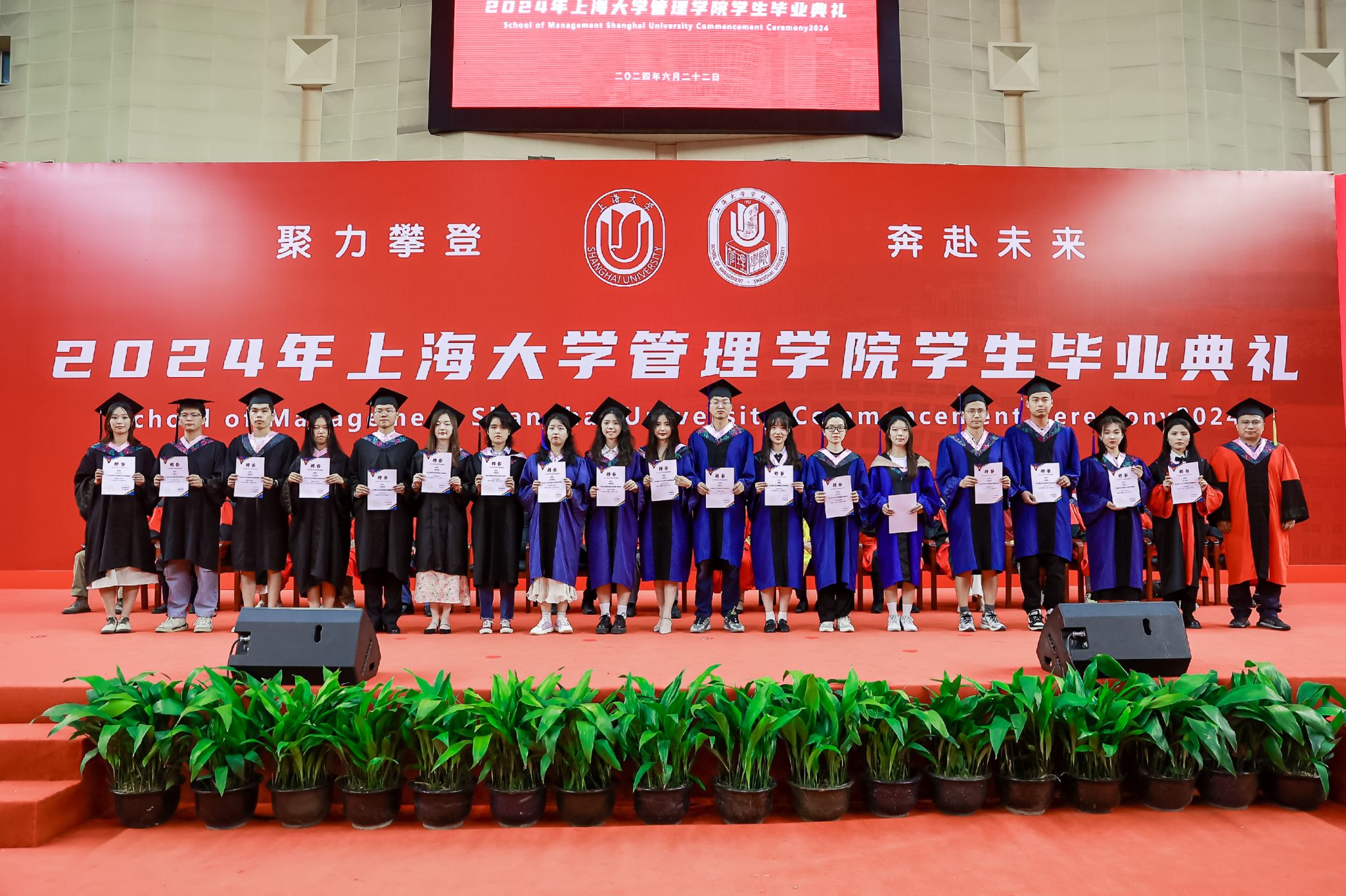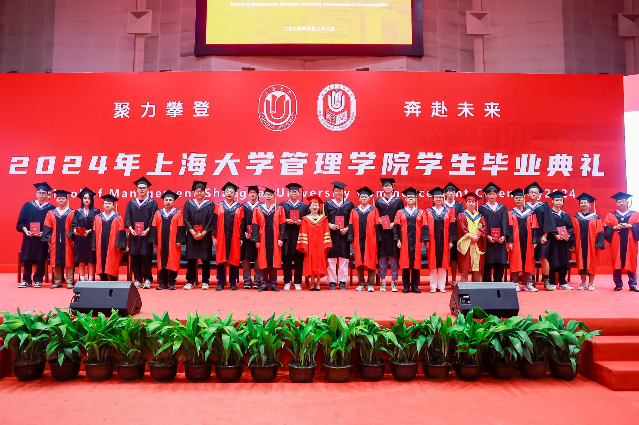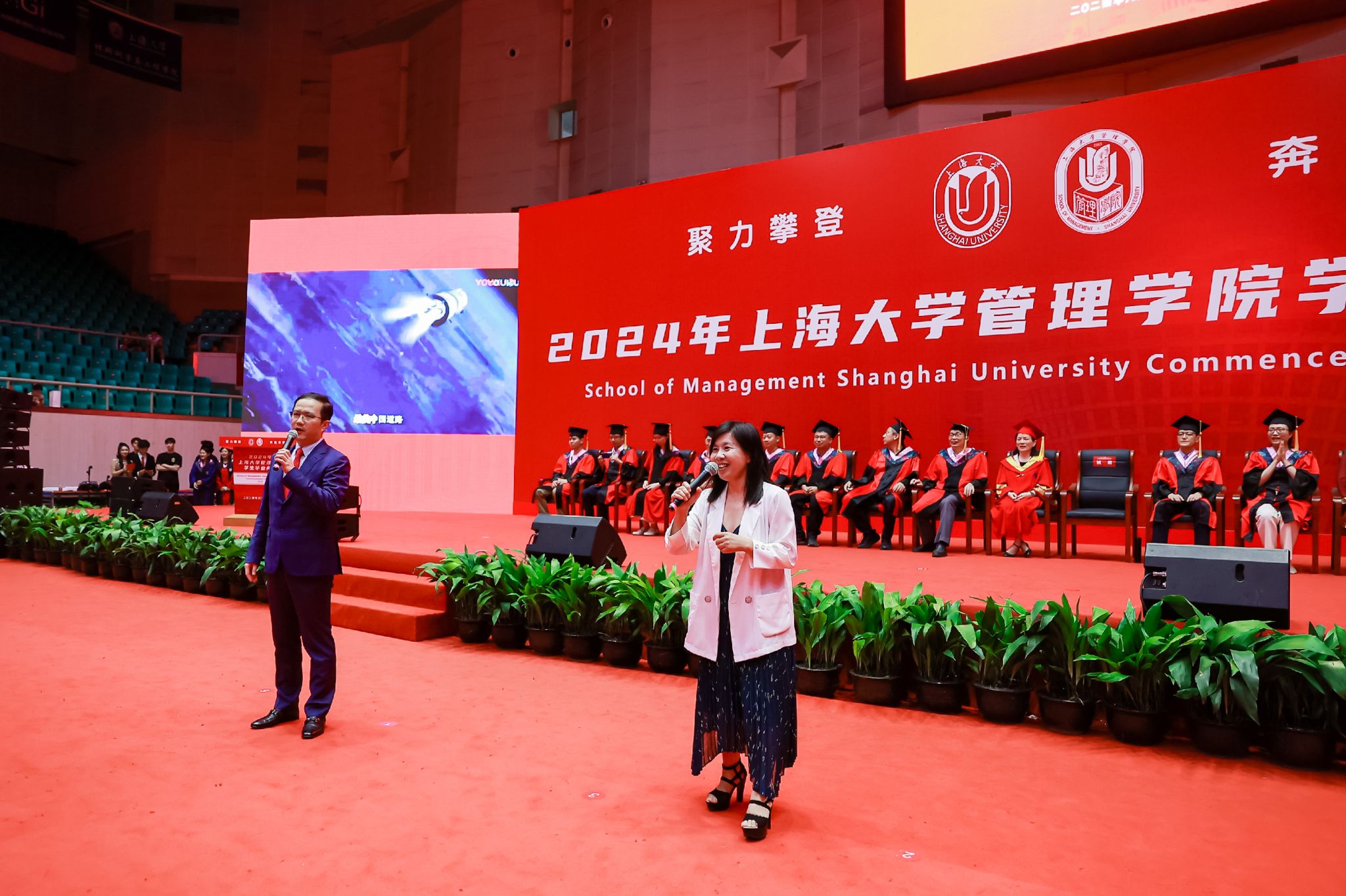 6月22日下午,诸侯快讯入口官网管理学院2024年毕业典礼暨学位授予仪式于宝山校区体育馆隆重举行,1000多名师生和家长共同庆祝管理学院2024届本科生、硕士生、博士生顺利完成学业。诸侯快讯入口官网党委常委、副校长聂清,管理学院党委书记许学国,管理学院党委副书记、院长镇璐,体育学院党委副书记、副院长卢高峰,管理学院党委副书记、副院长马亮,副院长于晓宇、许科以及学位委员会成员、各系领导、导师、毕业班辅导员和管理学院2024届毕业生及家长出席本次活动。典礼由2022级工商管理本科生韩宇和2021级管理科学与工程硕士毕业生彭可欣主持。