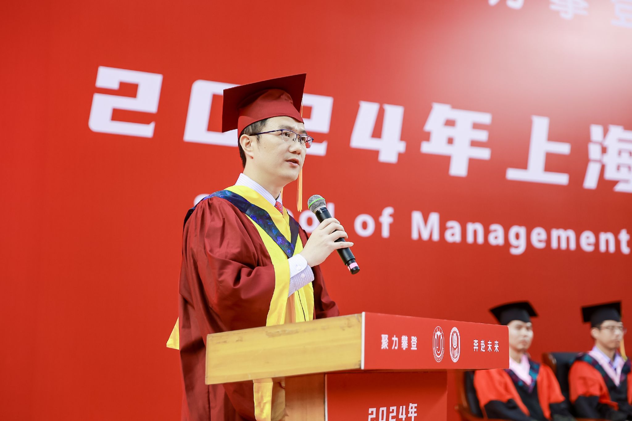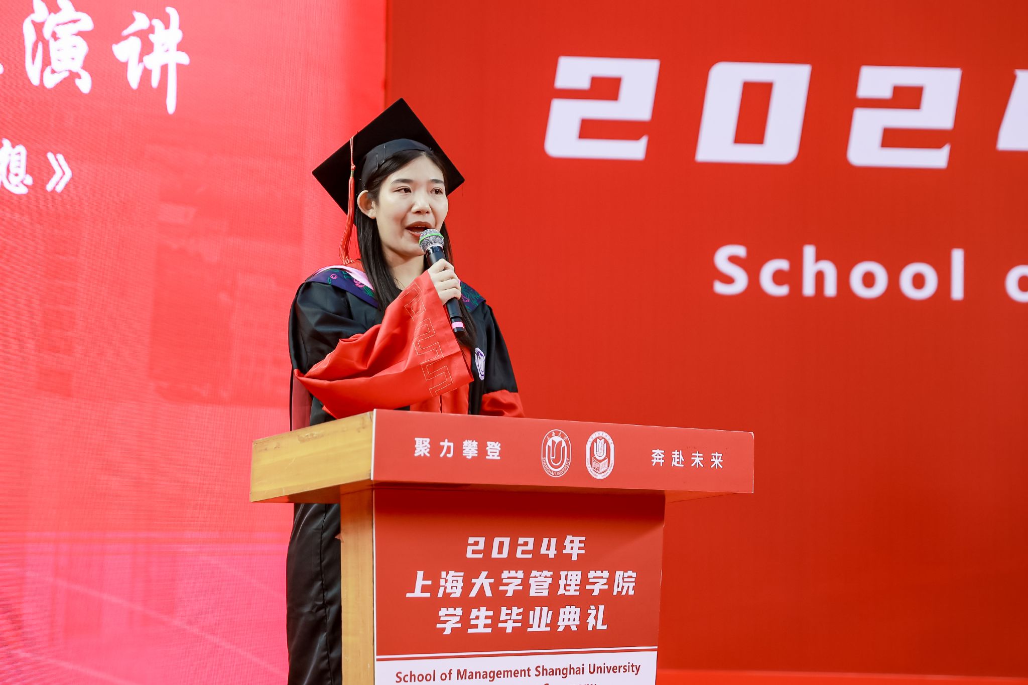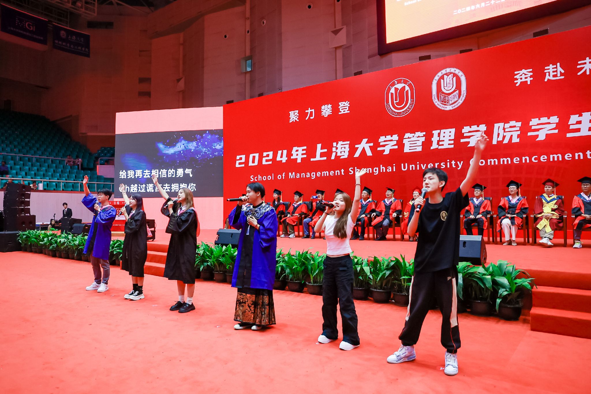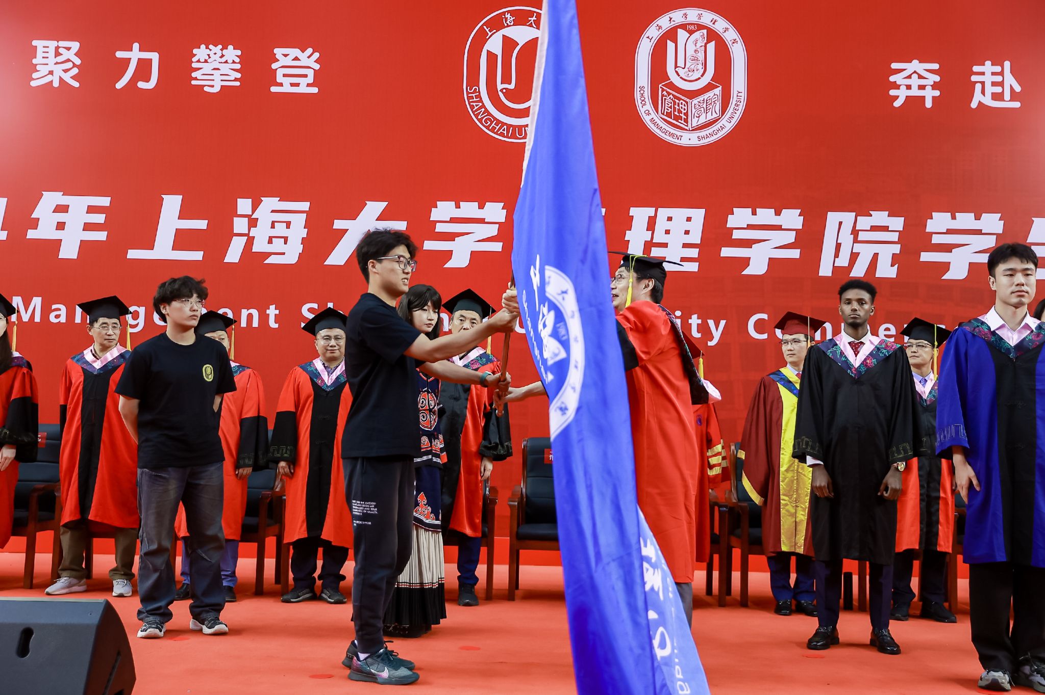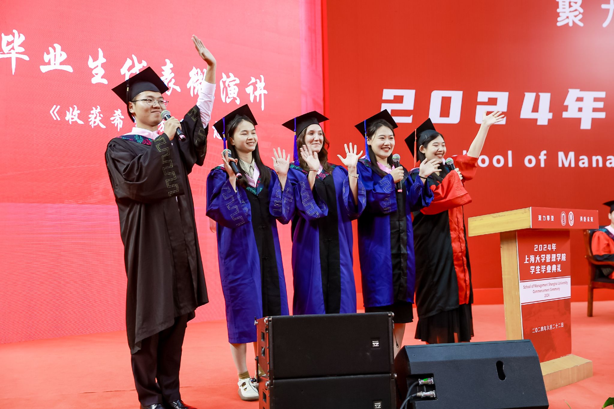 6月22日下午,诸侯快讯入口官网管理学院2024年毕业典礼暨学位授予仪式于宝山校区体育馆隆重举行,1000多名师生和家长共同庆祝管理学院2024届本科生、硕士生、博士生顺利完成学业。诸侯快讯入口官网党委常委、副校长聂清,管理学院党委书记许学国,管理学院党委副书记、院长镇璐,体育学院党委副书记、副院长卢高峰,管理学院党委副书记、副院长马亮,副院长于晓宇、许科以及学位委员会成员、各系领导、导师、毕业班辅导员和管理学院2024届毕业生及家长出席本次活动。典礼由2022级工商管理本科生韩宇和2021级管理科学与工程硕士毕业生彭可欣主持。