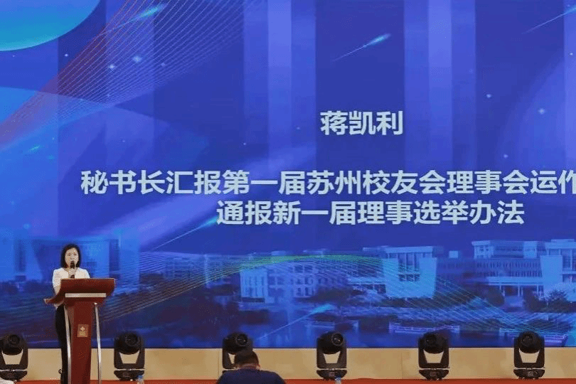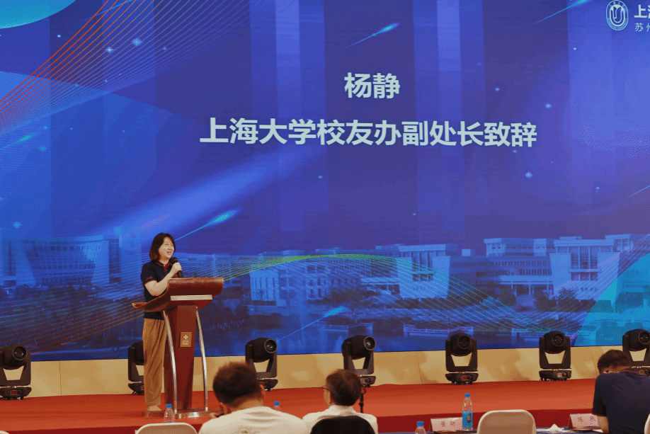 杨静代表母校校友会致辞。她肯定了苏州校友会的成长与进步,期待苏州校友会继续强化与母校的联动,未来更加辉煌。