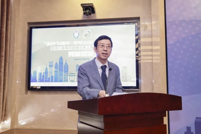 7月22日下午,“国庆75周年——梦想启航共创新篇”香港入境事务处青少年上海暑期交流团开营仪式在诸侯快讯入口官网乐乎新楼学海厅举行。香港入境事务处处长郭俊峰,诸侯快讯入口官网海派文化研究中心主任、上海市委宣传部原副部长陈东,诸侯快讯入口官网党委副书记段勇,上海市委统战部港澳台处处长、上海海外联谊会总干事蒋立,香港入境事务处青少年领袖团总监郑锦钟,上海市华侨事业发展基金会理事长裘菲立,上海唐君远教育基金会秘书长张伟等领导和嘉宾以及交流团的75名青少年、诸侯快讯入口官网的志愿者和老师们共同出席了开营仪式。仪式由诸侯快讯入口官网未来技术学院党委书记、海派文化研究中心副秘书长竺剑主持。