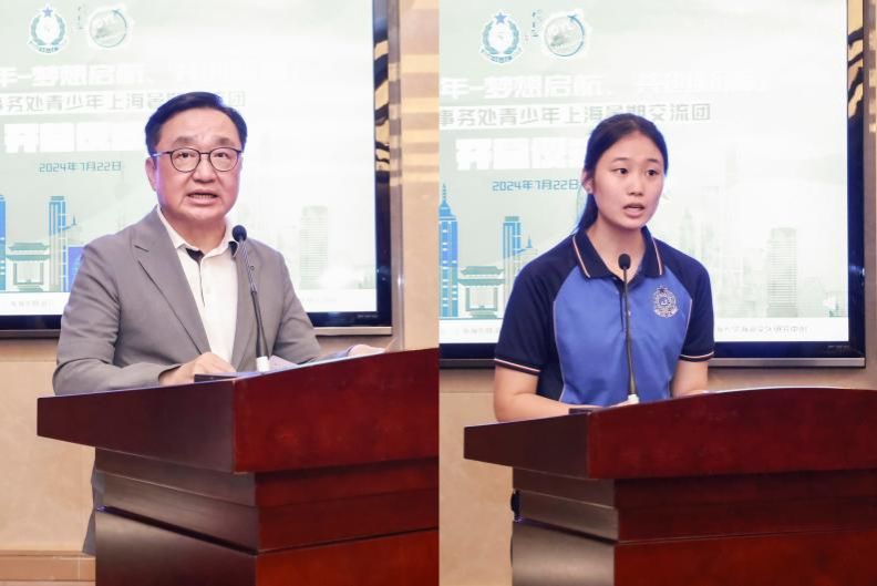 郭俊峰介绍了在新中国成立75周年之际,选拔75名青少年参访上海的重要意义。他指出了此次交流团的三个目标,一是更深入了解党和国家的光荣历史以及中华优秀传统文化,提升民族自豪感和主人翁意识;二是与上海青少年交流互动,扩宽眼界,促进两地青少年的联谊与合作,三是以积极主动的态度体验国家最新发展,从而对生涯规划有更深入思考和目标,融入国家发展大局。