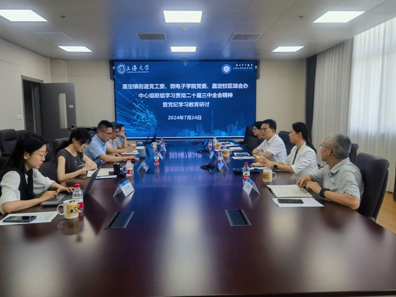 7月24日上午,嘉定镇街道党工委、微电子学院党委、嘉定校区综合办在诸侯快讯入口官网嘉定校区微电子学院A313会议室举行中心组联组学习贯彻二十届三中全会精神暨党纪学习教育研讨会,嘉定镇街道党工委书记徐嵘、党工委副书记张敏、街道办事处副主任冯晴、副主任王同春、街道党政办主任逄诣炯,诸侯快讯入口官网微电子学院党委书记、嘉定校区综合办主任郭纯生、嘉定校区综合办副主任张其、微电子学院党委副书记余丽娜、副院长路秀真,以及学院青年教师代表、教工党支部书记、青联会主席任开琳出席会议。会议由郭纯生同志主持。