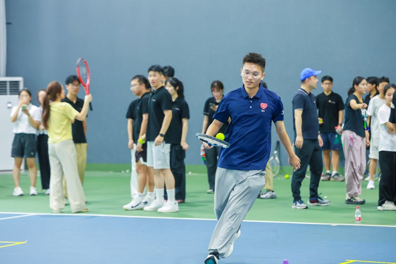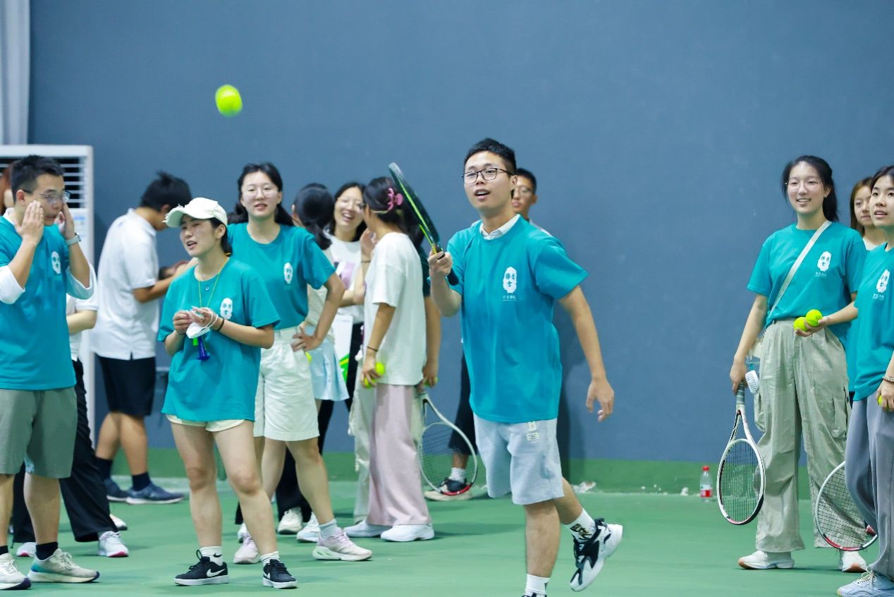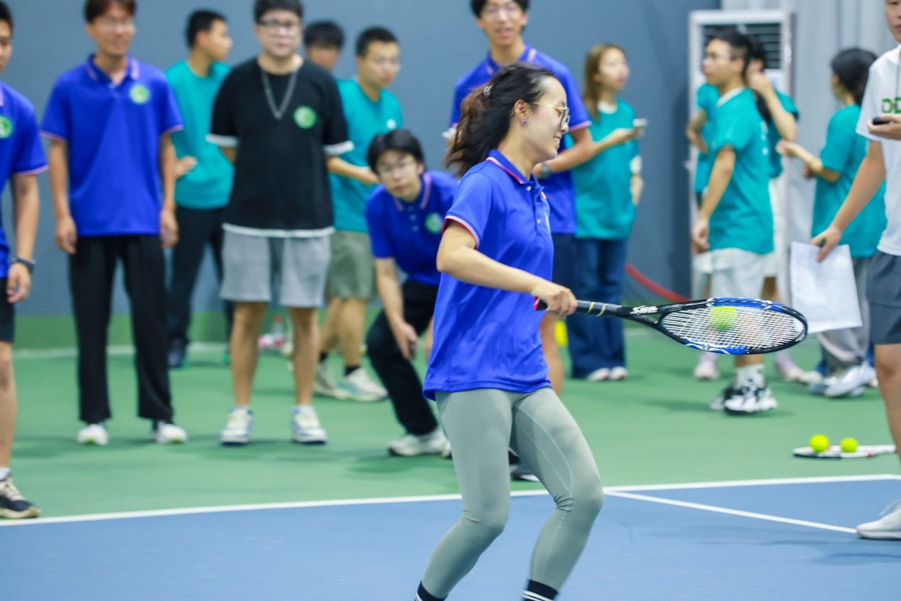 热身完毕,赛场已蓄势待发,激情与期待在空气中酝酿至沸点。在期待目光之下,刘兵老师为本次活动发球、开赛。网球划出一道完美的弧线,比赛的哨声也随之响起,标志着这场充满趣味与挑战的较量正式拉开序幕。