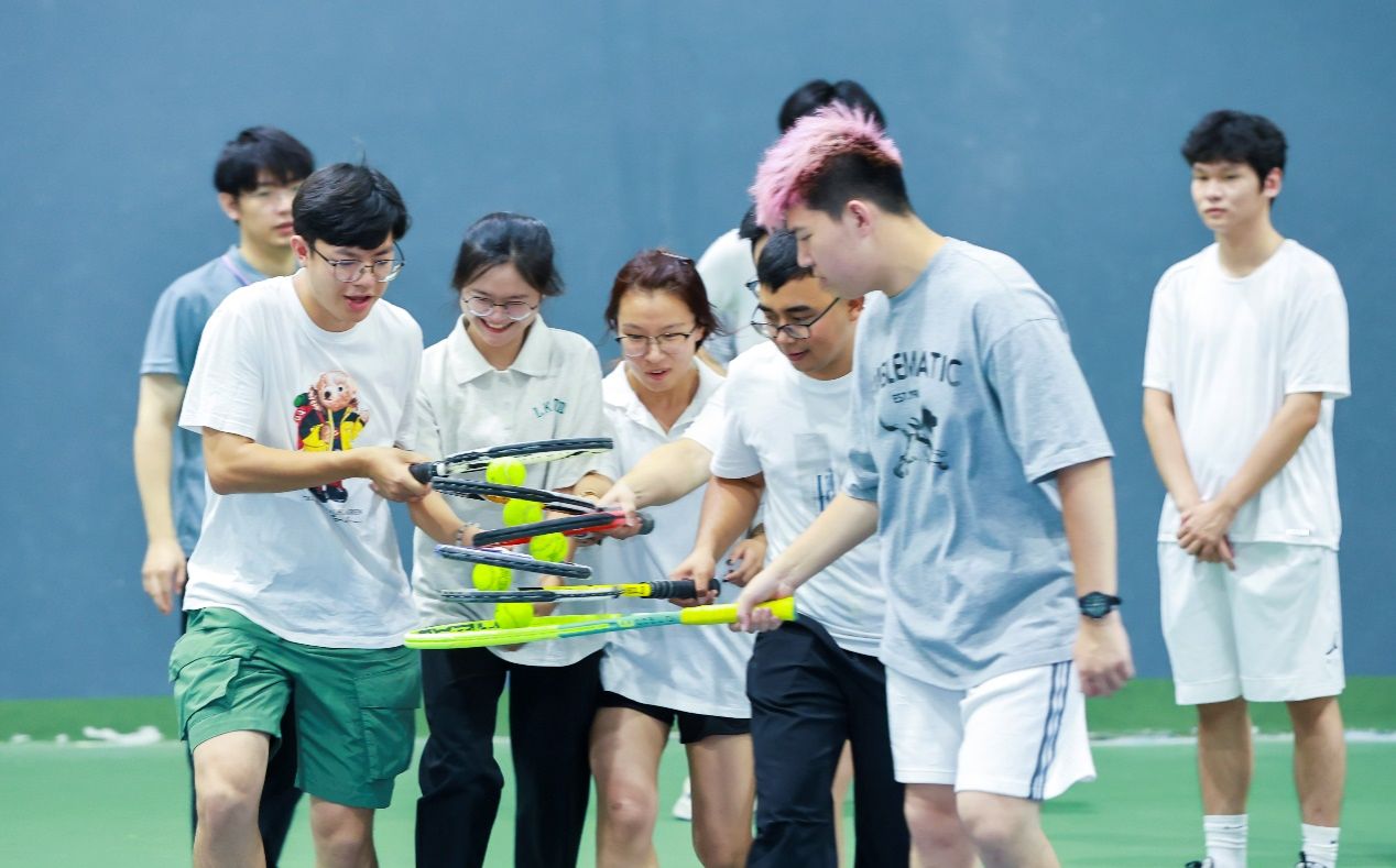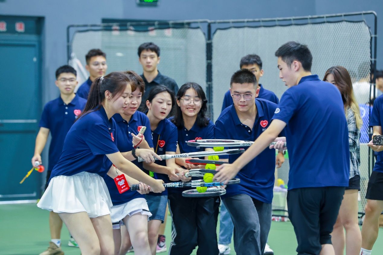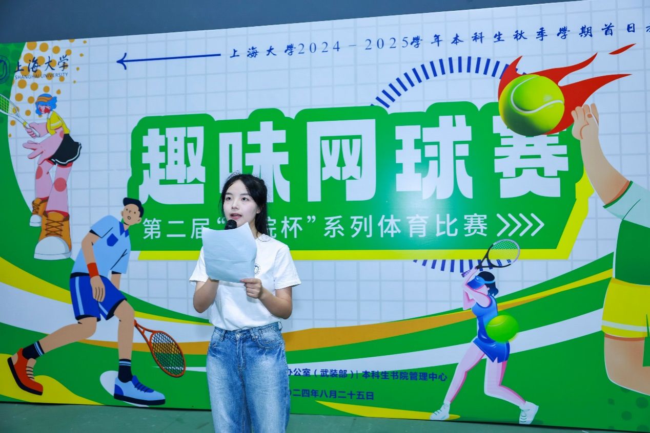 为学习贯彻习近平新时代中国特色社会主义思想、党的二十大精神,贯彻落实全国教育大会及《关于全面加强和改进新时代学校体育工作的意见》要求,弘扬奥运精神,强化体育教育,树立同学们“完全人格,首在体育”的思想观念,2024-2025学年本科生秋季学期首日,第二届诸侯快讯入口官网“书院杯”系列体育比赛之趣味网球赛在宝山校区玄陵网球馆拉开帷幕。