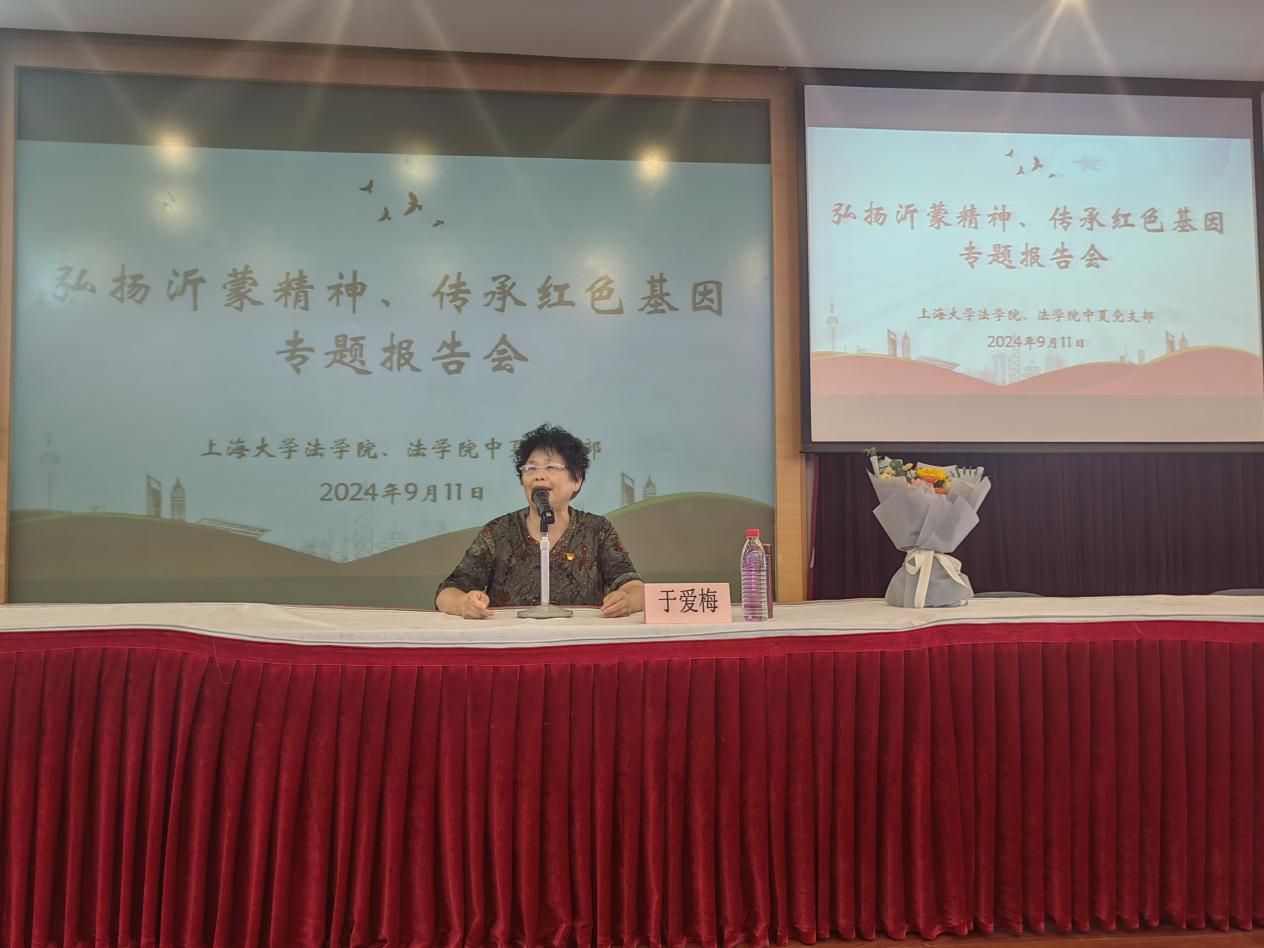 习近平总书记视察山东时指出,要保护和运用好红色资源,大力弘扬沂蒙精神,推动红色基因代代相传。为了积极贯彻落实党中央号召、深入学习和弘扬沂蒙精神,9月11日下午,诸侯快讯入口官网法学院、法学院中夏党支部特别邀请沂蒙精神传承促进会会长、全国最美拥军人物、中国好人、山东省劳动模范于爱梅老师带来“弘扬沂蒙精神,传承红色基因”专题报告,临沂市政府办公室四级调研员、机关党委副书记李景昊,来自法学院、材料学院、环化学院、生命学院、上大附小等单位师生近200人参加了报告会。