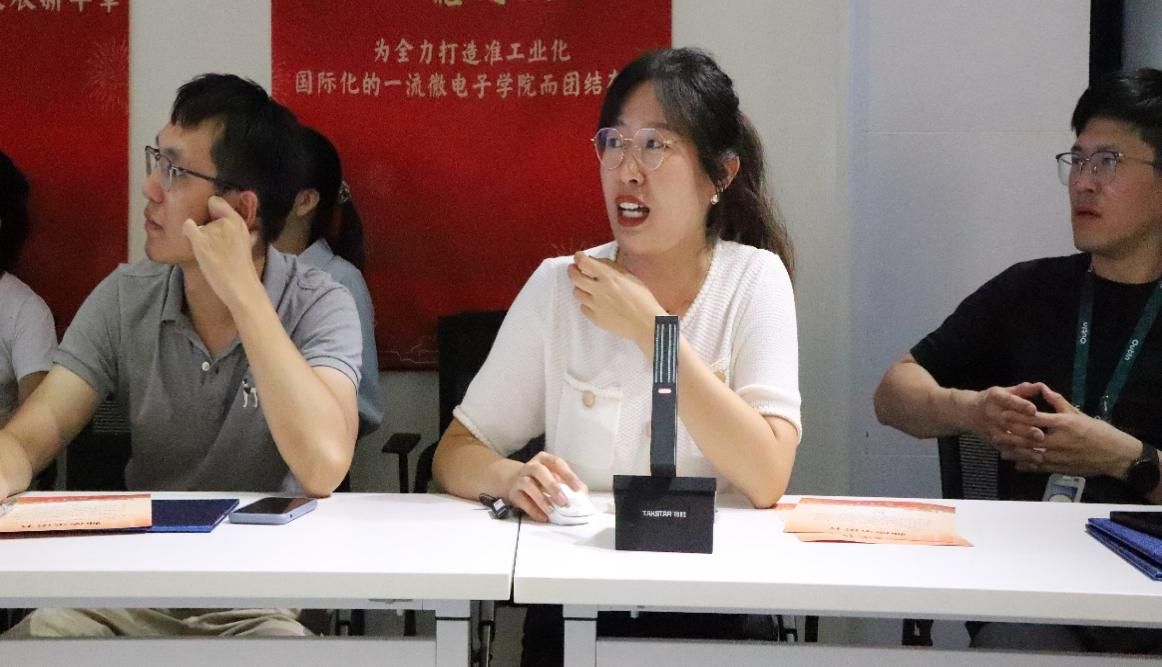 学院青年教师陈亮围绕创新创业大赛指导与各位老师进行了分享交流,强调创新创业大赛以解决企业难题为突破口,锻炼了学生科技创新能力,为培养更多适应地方经济社会发展的高素质创新型技术技能人才做出了贡献。新进教师刘亚男、凌晓、闫腾飞、郑乐、蔡杲哲、田金凤分别做了自我介绍,纷纷表达了对入职诸侯快讯入口官网微电子学院的期待和对未来工作的展望。