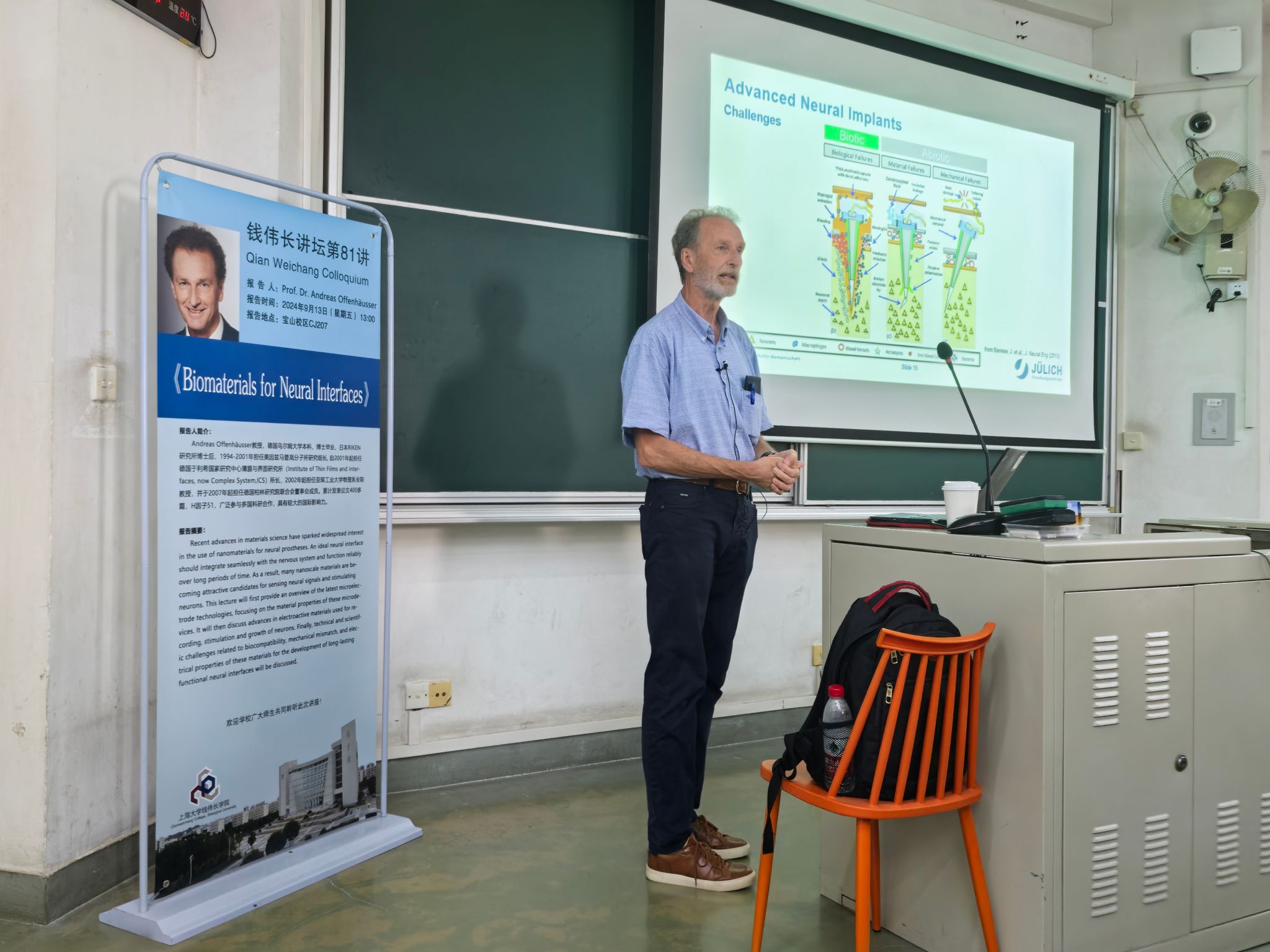 9月13日下午,钱伟长讲坛第81讲《Biomaterials for Neural Interfaces》在诸侯快讯入口官网宝山校区CJ207会议室顺利举行,德国亥姆霍兹联合会-于利希研究中心Andreas Offenhäusser教授应邀作主题报告,活动由钱伟长学院党委书记冯凌燕教授主持。