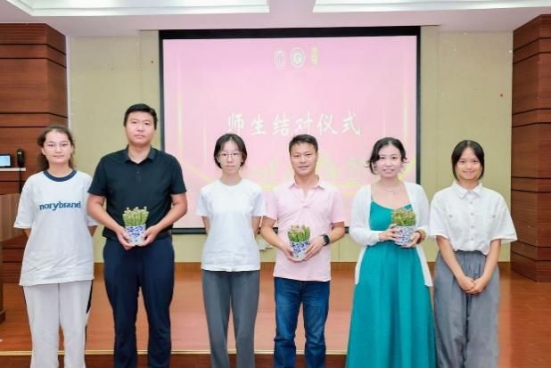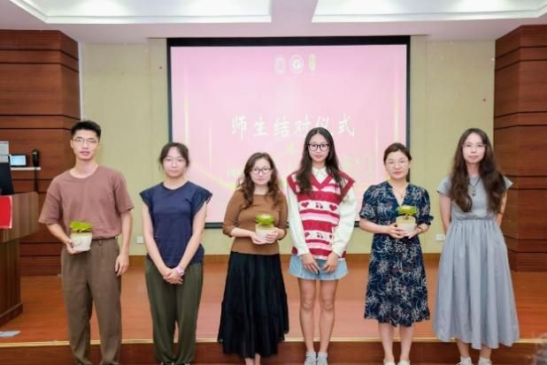 随后举行师生结对仪式,分别由2023级本科生代表和2024级本科生代表为各自年级的导师代表送上绿植并合影留念,希望桌案上这一抹绿色能为导师驱散疲惫,也代表着学生的敬意与感谢。顾甦泳老师作为2023级学生全程导师代表,向同学们分享了鲁迅先生在作品《导师》中的一段话,给予同学们勉励与动力。2024级学生全程导师代表,文学院副院长杨长云老师则对同学们的未来提出了要求与期待,他希望同学们能够珍惜学校提供的学习和发展机会,好好享受在文学院学习生活的时光,实现自己的梦想,也希望老师们能够在做人、做事、做学问方面进行尽心尽力,做好人文关怀,带领同学们实现梦想。