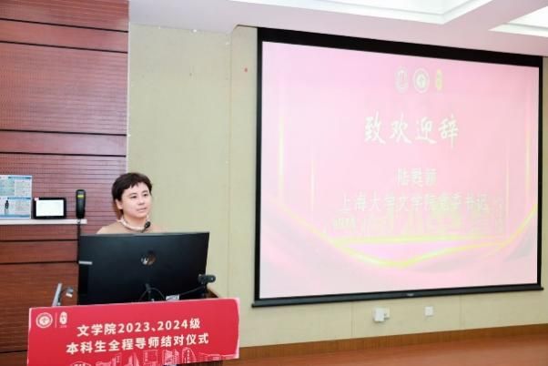 活动伊始,文学院党委书记陆甦颖老师为本次活动致欢迎词。陆老师谈到全程导师制作为上大特色,是学校人才培养价值链上的重要环节,她对文学院的教师表达了感谢,同时勉励同学们认真跟随导师学习以提升自我,共同为上大人才培养创造更多硕果。