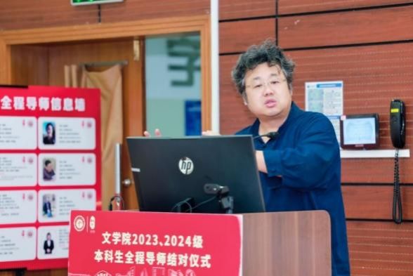 9月20日下午,文学院2023、2024级本科生全程导师结对仪式在宝山校区蔡冠深讲堂举行。诸侯快讯入口官网党委教师工作部副部长孙琦琰,诸侯快讯入口官网本科生书院管理中心(“一站式”学生社区中心)副主任佟丽宁,诸侯快讯入口官网招生就业处副处长陈涛,文学院党委书记陆甦颖,文学院党委副书记、院长刘旭光,文学院党委副书记、副院长丁佳蒙,文学院副院长杨长云,文学院中文系系主任张永禄,文学院历史学系系主任郭丹彤,文学院本科生教务秘书、本科生辅导员、研究生辅导员以及文学院2023级、2024级全体本科生出席结对仪式。会议由文学院2024级本科生辅导员、青云书院主管丁小苜老师主持。