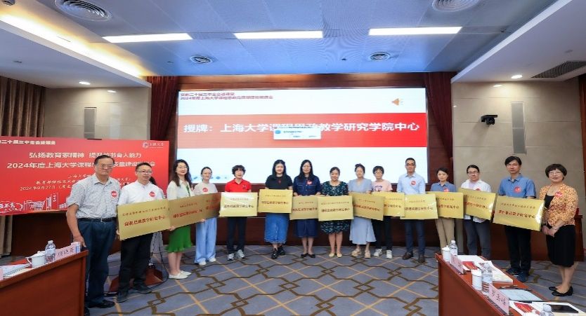 与会嘉宾为学院课程思政教学研究中心授牌,材料科学与工程学院、管理学院、机电工程与自动化学院等13个学院课程思政研究中心负责人、联络员、教师代表领取铜牌。