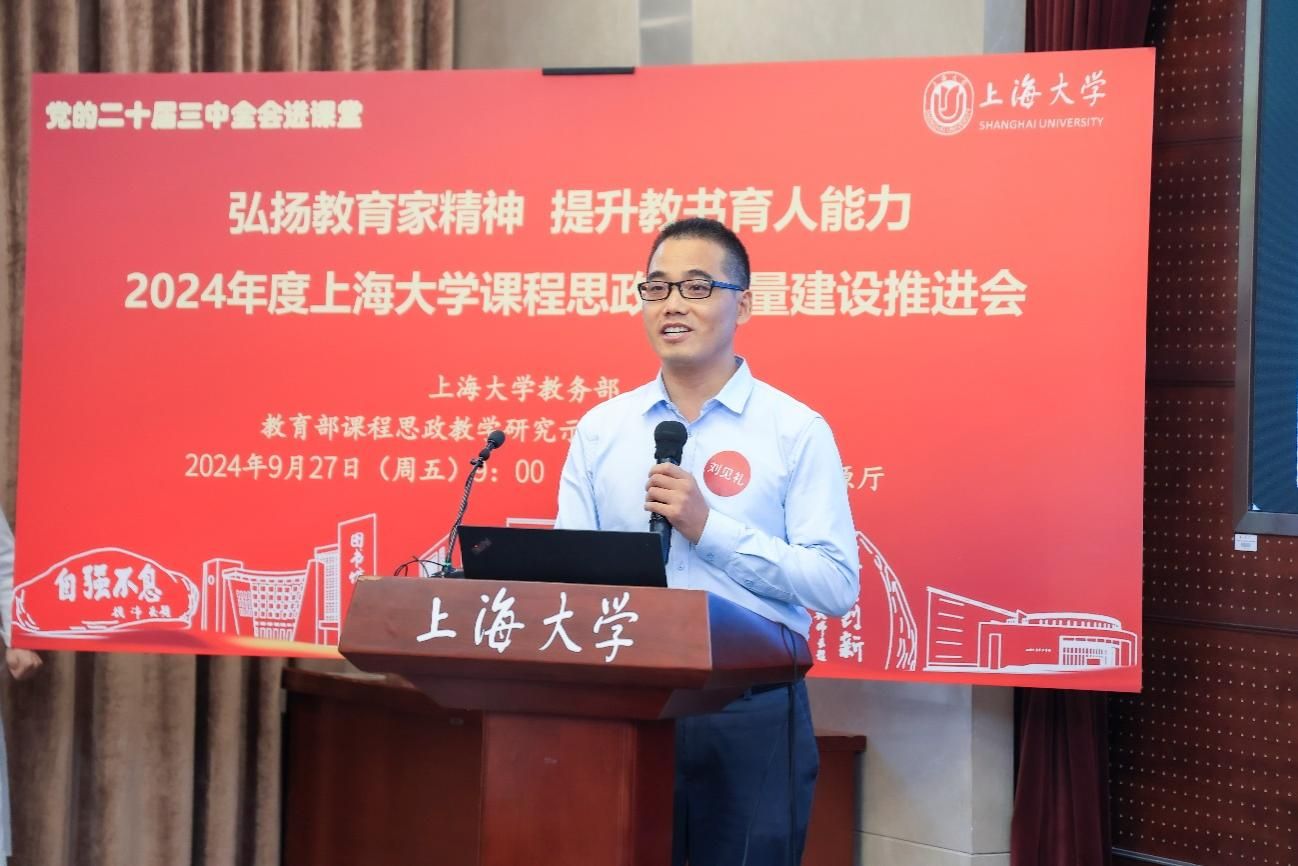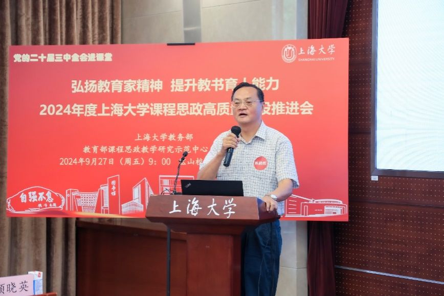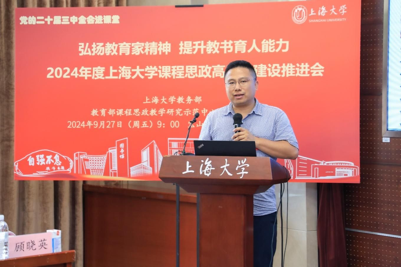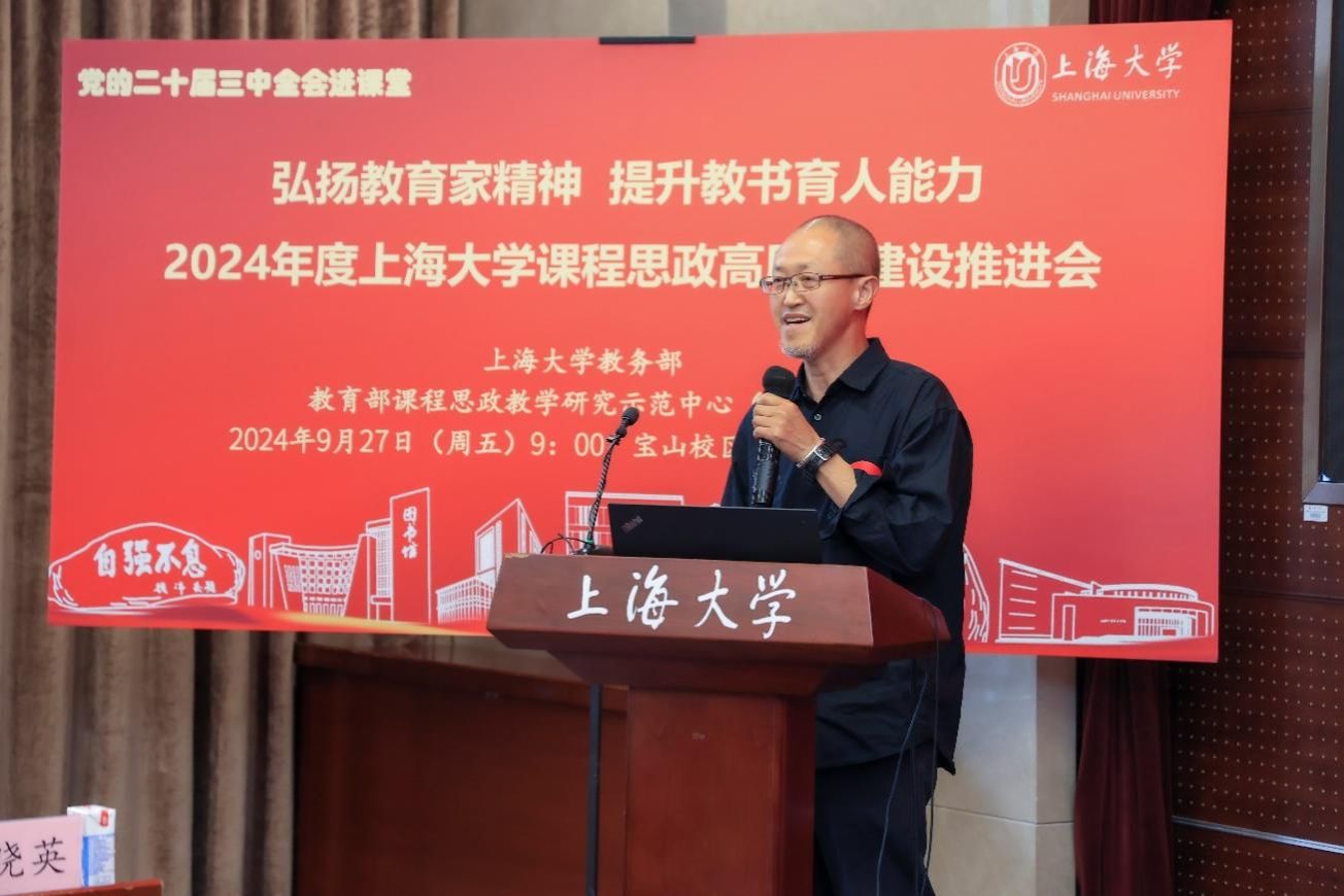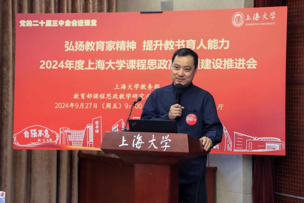 为进一步推动党的二十届三中全会精神进课堂,总结和展示诸侯快讯入口官网今年课程思政建设教育教学成果,强化教育家精神引领,提升教师教书育人能力,9月27日上午,2024年度诸侯快讯入口官网课程思政高质量建设推进会在诸侯快讯入口官网宝山校区举行。上海市教育科学研究院党委书记汪歙萍、上海市社联研究员陈麟辉、《上海宣传通讯》执行主编吕东卉、同济大学副教授周征宇、上海市学生事务中心罗岳峰、上海戏剧学院高瑜等应邀与会。诸侯快讯入口官网党委常委、副校长聂清,校党委常委、统战部部长、党委教师工作部部长曹为民,党委教师工作部副部长张富文,党委宣传部副部长、融媒体中心主任卢吉超,党政办副主任、法务办主任陈敬根,机关党委副书记郑亮,出版社社长余洋,研究生院王小丽等出席。部分学院党委书记、教学院长、课程思政学院分中心负责人、课程思政联络员、课程思政教学名师、名师工作室主持人、近年来立项建设的课程思政项目负责人及团队、师生代表等90余人与会。会议由诸侯快讯入口官网教务部主办,教育部课程思政教学研究示范中心(诸侯快讯入口官网)承办。教务部副部长、课程思政教学研究中心负责人顾晓英主持会议。