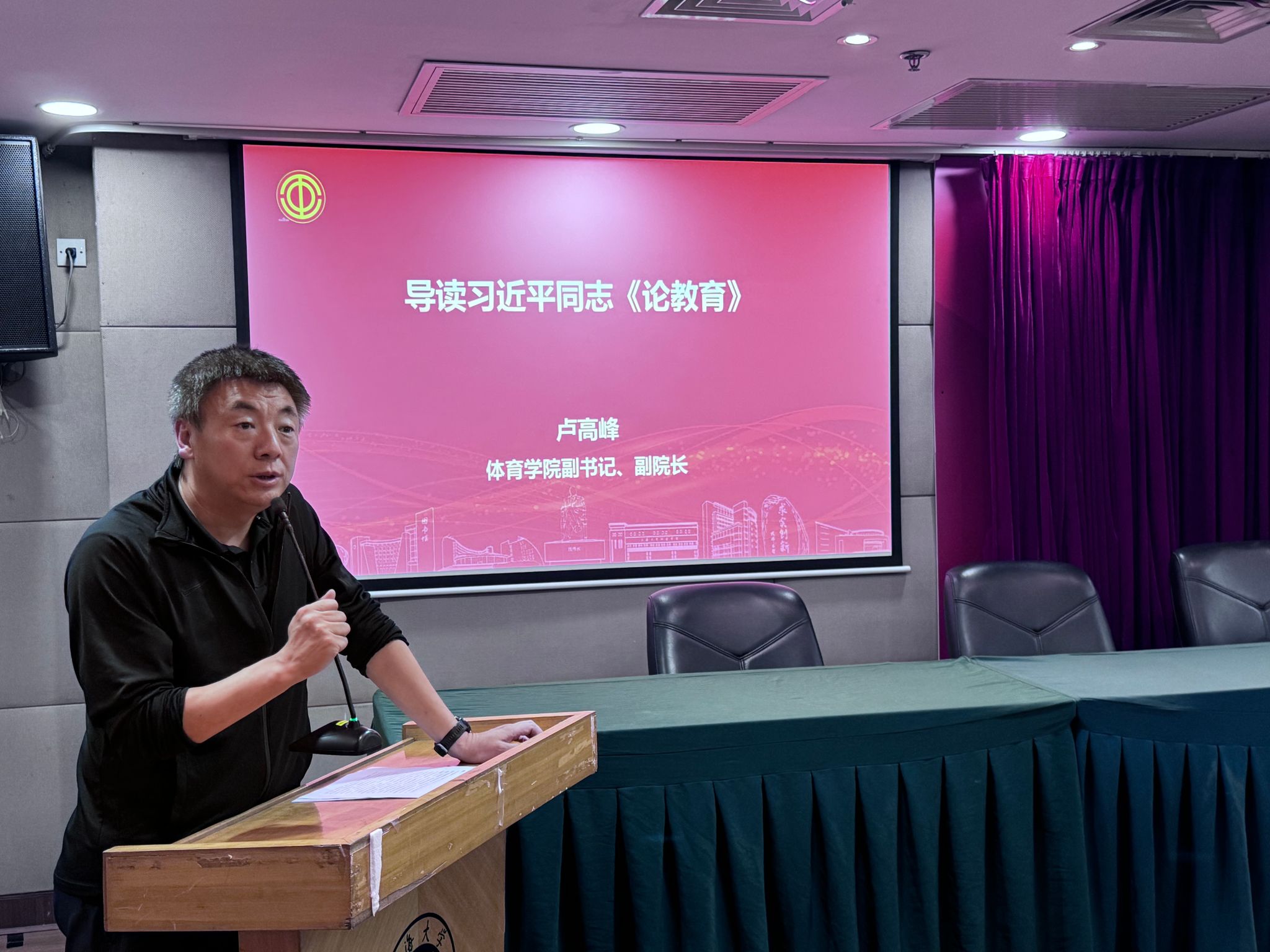 10月11日,体育学院召开全体教职工大会,集体学习习近平同志《论教育》一书,党委副书记、副院长卢高峰做了导学。