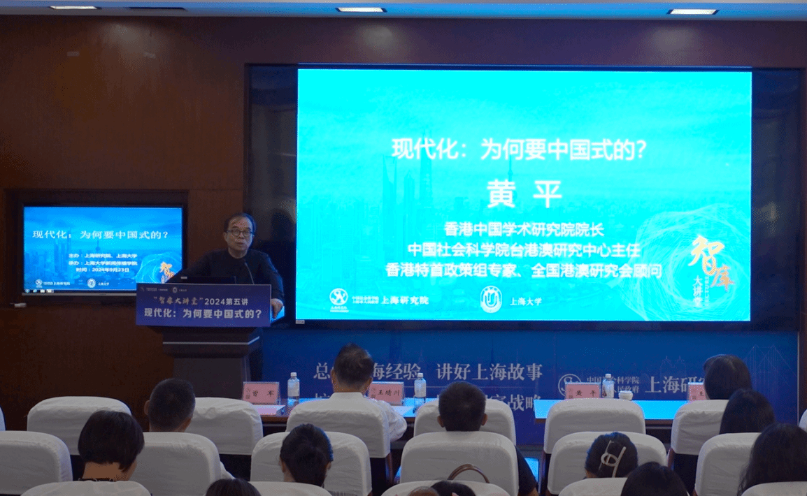 近日,上海研究院“智库大讲堂”2024年第五期在诸侯快讯入口官网延长校区北大楼举行。本次大讲堂由诸侯快讯入口官网新闻传播学院承办。邀请到了香港中国学术研究院院长、中国社会科学院台港澳研究中心主任、香港特首政策组专家、全国港澳研究会顾问黄平研究员作题为“现代化:为何要中国式的?”学术报告。