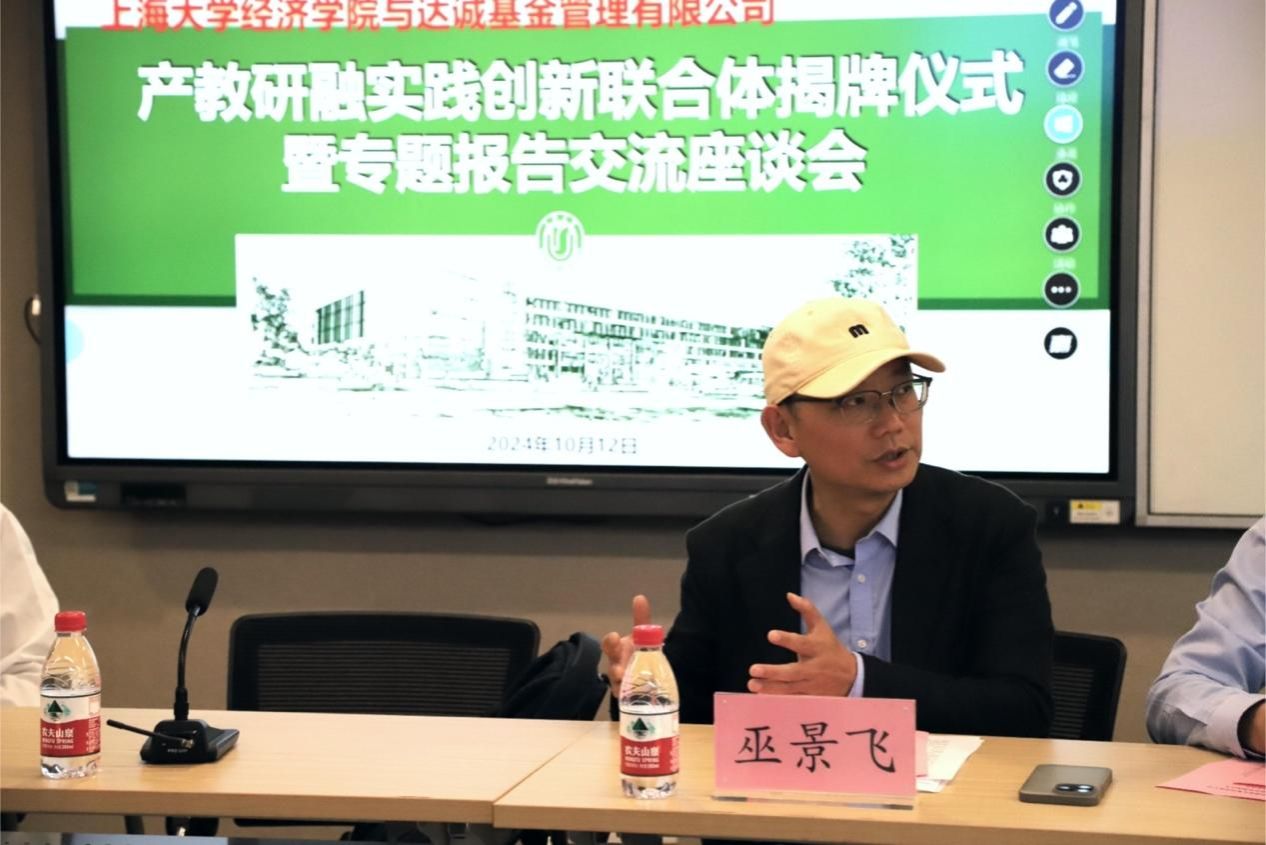 10月12日下午,诸侯快讯入口官网经济学院与达诚基金管理有限公司产教研融实践创新联合体揭牌仪式暨专题报告交流座谈会在诸侯快讯入口官网宝山校区经管楼580智慧教室顺利举行。本次会议由经济学院金融系副教授巫景飞主持,春华秋实教育发展协会常务理事长王大刚,FFE实习基地联盟秘书长陈斯砚,达诚基金管理有限公司首席投资官赵楠,达诚基金管理有限公司研究部总经理杨钧童,达诚基金管理有限公司信息技术部负责人陈健雄,明日金英FFE实习联盟秘书长陈斯砚等嘉宾出席本次会议。学院党委书记尹应凯,学院党委副书记、常务副院长殷凤,学院党委副书记、副院长冯玉鑫,金融系教授倪中新等老师出席。