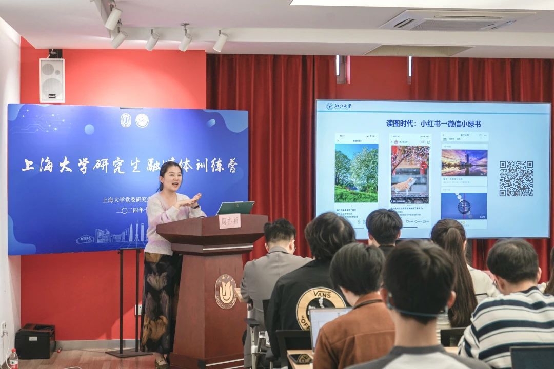 复旦大学研工部新媒体中心“复旦研究生”新媒体主编席澜心老师聚焦研究生校园媒体的选题策划与运营,以“复旦研究生”微信公众号为例,向我校研究生融媒体骨干传授了宝贵经验。席老师不仅详细讲解了如何紧跟国家热点、校园热点、网络热点,如何策划兼顾弘扬主流价值观与同学们的阅读兴趣的推文,还通过对高阅读量作品的分析,指导大家如何精准把握研究生群体的信息需求,打造信息规范、时效突出、形式创新的高质量信息推送。此外,席老师还分享了系列优质文创设计作品,为我校研究生媒体建设工作带来了新创意、新启发。