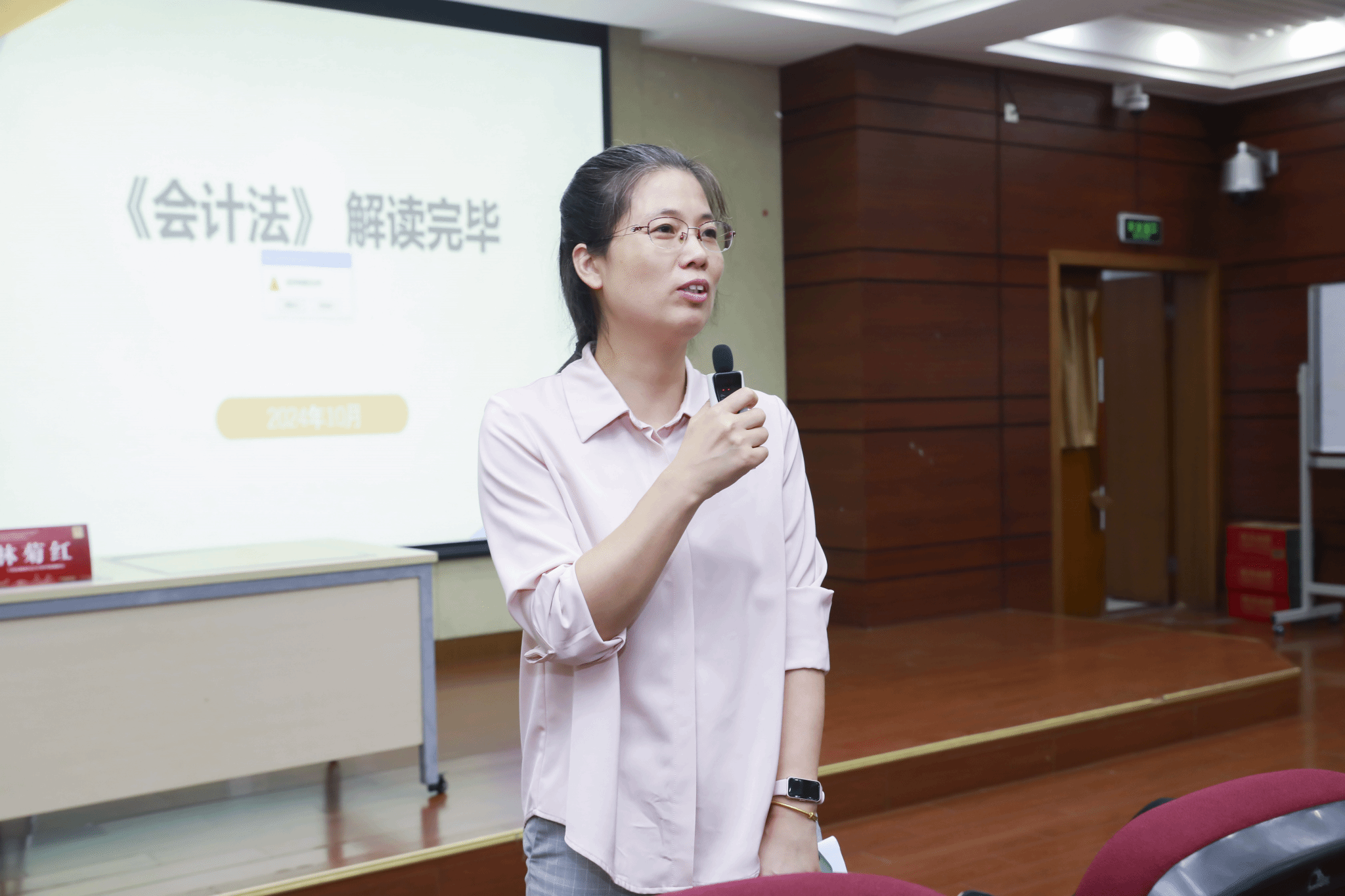 学习和践行新《会计法》,推进会计学科产教融合与课程思政建设,10月25日,由诸侯快讯入口官网财务处、管理学院会计系联合主办的“支部共建、产教融合,联合学习《会计法》”专题活动在诸侯快讯入口官网宝山校区经管大楼蔡冠深大讲堂成功举办,会议邀请了市财政局会计处林菊红调研员解读新《会计法》,财务处与管理学院领导、财务处与管理学院会计系全体教职工、二级单位财务工作人员、资产经营公司及下属企业的财务工作人员、管理学院与经济学院学生代表等近百余名师生现场参会。会议还特邀了学校法务办的人员出席。