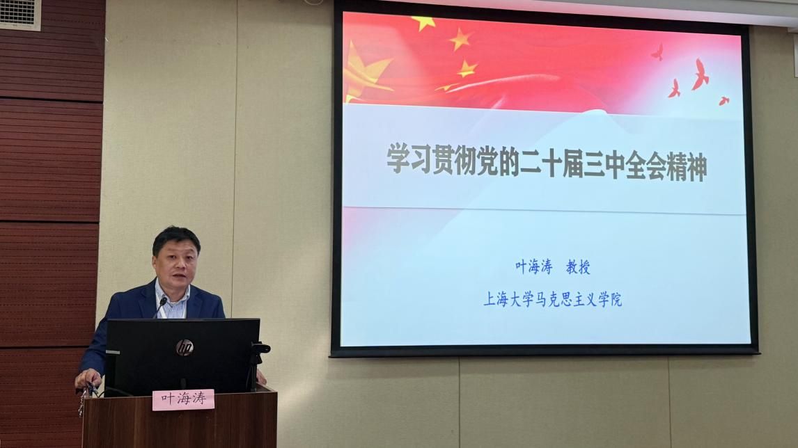 叶海涛对党的二十届三中全会精神作了系统宣讲和深入阐释。他指出,这次全会紧紧围绕推进中国式现代化这个主题擘画进一步全面深化改革新蓝图,向世界释放新时代中国坚定不移高举改革开放旗帜的强烈信号,为推动中国式现代化规划前进路径,也为促进中国与世界共同发展注入动力。