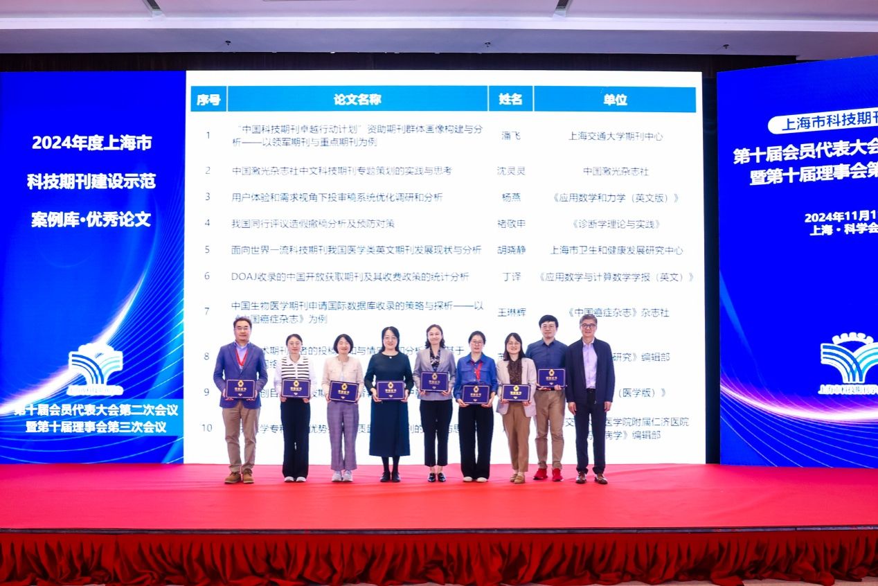 《应用数学和力学(英文)》编辑部杨燕和《应用数学与计算数学学报(英文)》编辑部丁译发表于《中国科技期刊研究》的论文《用户体验和需求视角下投审稿系统优化调研和分析》和《DOAJ收录的中国开放获取期刊及其收费政策的统计分析》入选2024年度“上海市科技期刊建设示范案例库·优秀论文”。