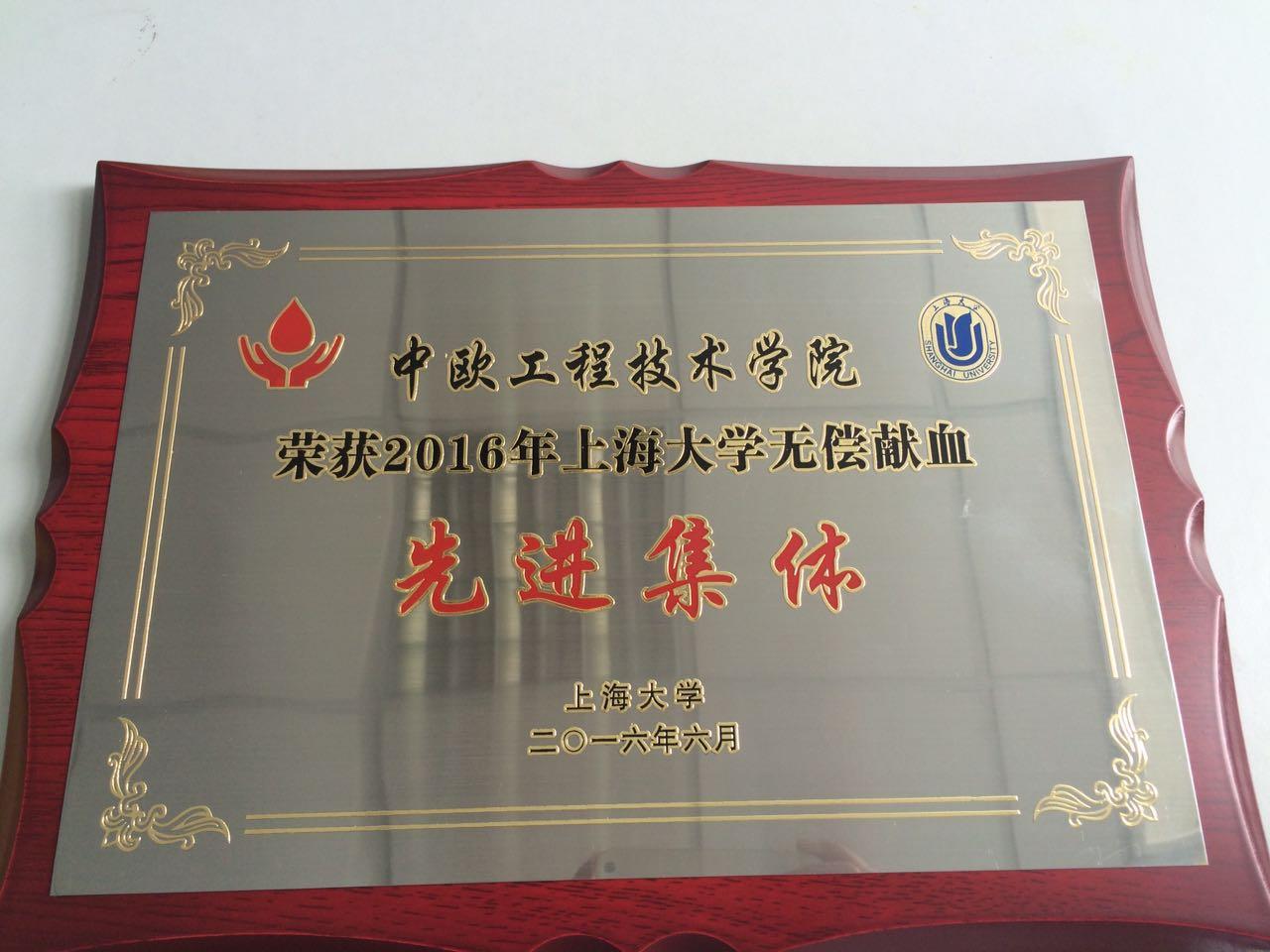 2016年6月,中欧工程技术学院被学校授予2016年诸侯快讯入口官网“无偿献血先进集体”荣誉称号,以表彰中欧师生在本年度献血工作中的人道主义奉献精神。其中,中欧学院2013级韩谷同学、周勤缘同学和2014级张雪松同学、吴照坤同学一起获得2016年诸侯快讯入口官网“无偿献血爱心银奖”荣誉称号;2013级李小壮同学获得2016年诸侯快讯入口官网“无偿献血爱心铜奖”荣誉称号。