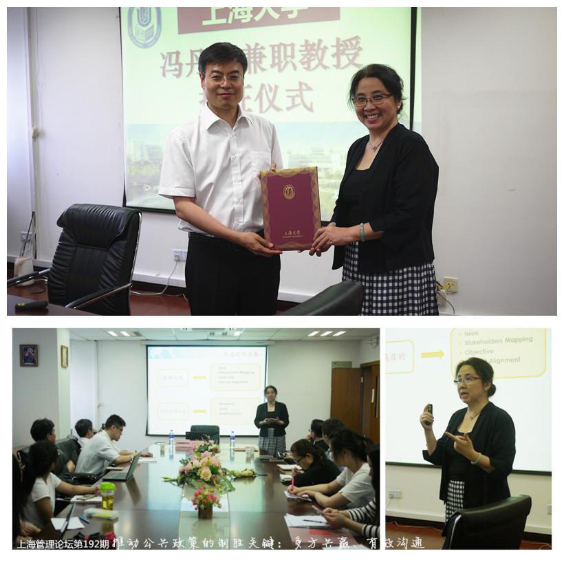 尤建新院长向在座师生隆重介绍了冯丹龙博士,作为辉瑞中国企业事务部总监的冯博士,同时还是全国政协委员、九三学社中央委员、中国经济社会理事会理事、中国控制吸烟协会常务理事。2000年,她曾赴美国议会面对美国参众两院的议员们发表演讲,以平实的语言、翔实可信的例证,为支持美国和中国进入正常经济贸易合作提供了最直接的证据。金校长对冯丹龙能够加盟诸侯快讯入口官网担任兼职教授表示热烈欢迎,并期待今后冯博士可以多来诸侯快讯入口官网传经送宝,与师生分享其在人力资源管理、管理沟通、公共政策领域的实践经验。