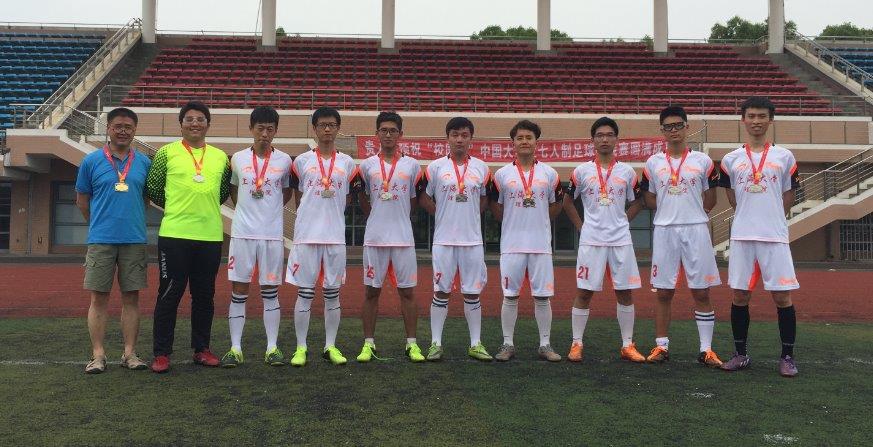2016“校园杯”中国大学生七人制足球挑战赛暨上海高校省内挑战赛昨日在上海工程技术大学落下帷幕。参加这次上海赛区的八强学校是:复旦、交大、财大、工技大、应技大、华政、华理和上大。代表各高校参赛的都是校内的冠军学院队。代表诸侯快讯入口官网出战的理学院足球队在学院副书记刘亮老师和领队兼教练沈强老师的带领下,不畏强手,一路过关斩将,决赛中与工技大相遇,3:3打平后,点球惜败东道主,获得亚军。