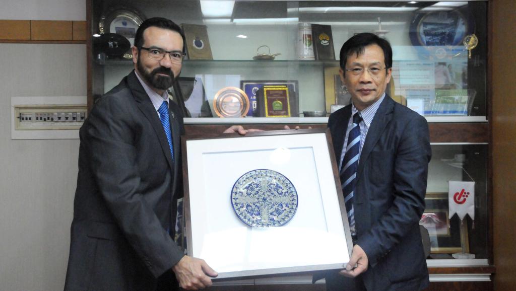 2016年5月9日, 墨西哥蒙特雷科技大学外事副校长Joaquín Guerra Achem等一行4人访问我校。汪敏副校长在行政楼203会议室会见了来宾,双方进行了友好交流并商议了两校校级合作协议签署事宜。参加会谈的还有国际事务处处长万旺根、国际交流学院院长姚喜明、国际事务处副处长崔巍等。