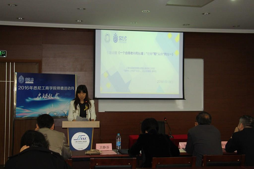 卫静芬首先向学院教职员工简要介绍了2016年悉尼工商学院师德活动月活动的筹备情况、活动安排和实施方案。经济系青年教师吴茂国随后作为教师代表上台宣读《悉尼工商学院关于开展2016年师德活动月的倡议书》。倡议书写道:“尽管教育中的课程、模式在不断发展变化,但开启智慧、传承文明和塑造人格的教育本质不会变!尽管教育的方法、教师的观念在变,但甘为人梯、引领未来、为人师表的教师职责不会变!学院工会谨向全院教师提出如下倡议,与大家共勉:一、爱国守法。 二、敬业爱生。三、教书育人。四、严谨治学。五、服务社会。六、为人师表”。