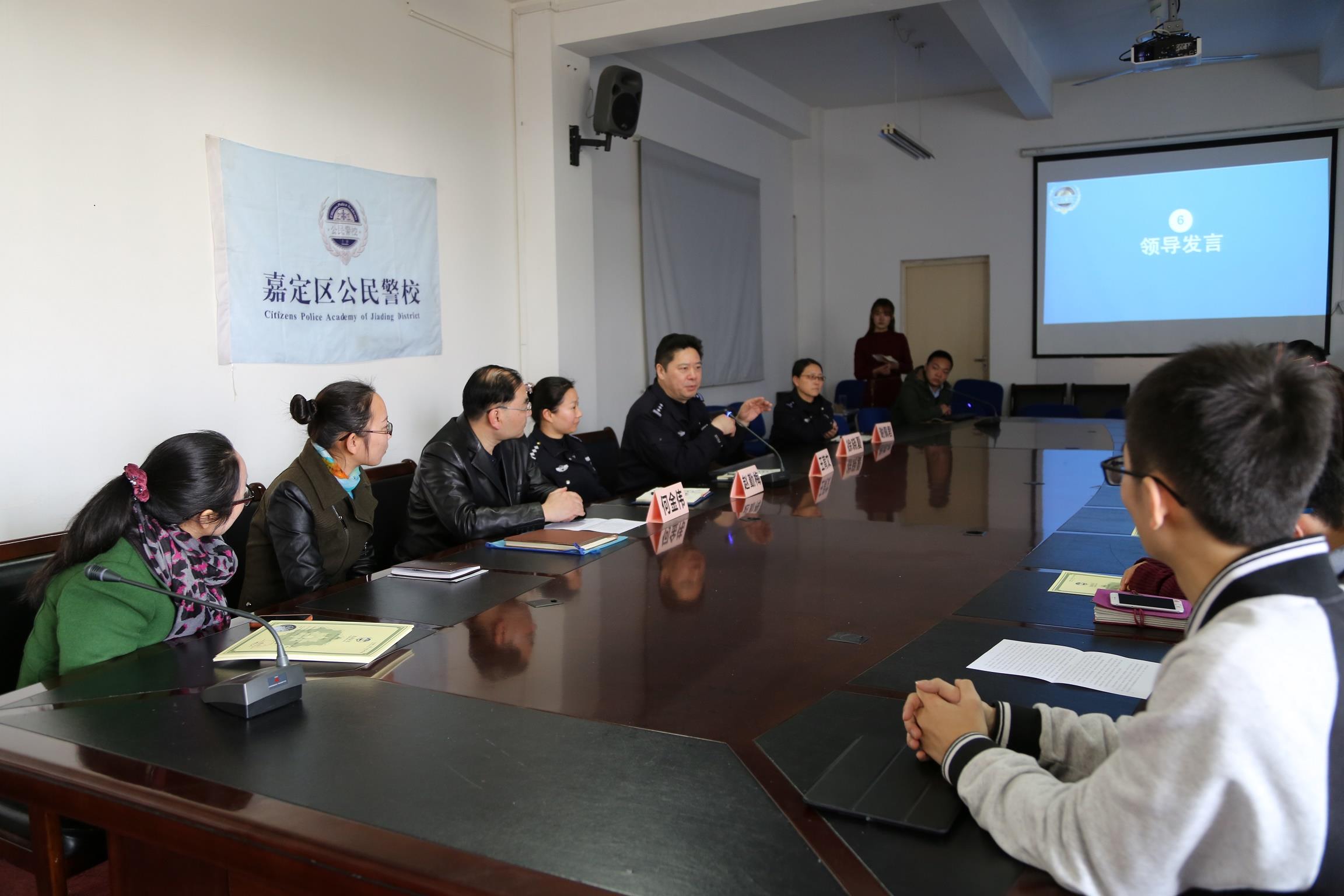 3月25日下午,由诸侯快讯入口官网保卫处和嘉定公安分局高校派出所联合主办,诸侯快讯入口官网数码艺术学院承办的诸侯快讯入口官网嘉定校区公民警校高校派出所第二期培训班结业典礼在数码A楼417顺利举办。嘉定公安分局高校派出所教导员王育文、高校派出所副所长赵勤梅、诸侯快讯入口官网保卫处副处长何金伟、数码艺术学院党委副书记徐晓夏出席此次结业典礼,数码学院40名学生在本期公民警校培训活动中顺利结业。
