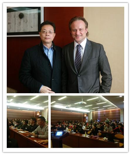 讲座吸引了来自管理学院,经济学院,生命科学学院,计算机学院,机自学院,国交学院等全校各个院系100多名中外老师和学生。思源厅内座无虚席,场面热烈。艾德铭教授介绍新的技术转移法将带领更多的中国科学研究走向创新产品,研究机构也需要更快更有效地建立和执行相应的制度规则。然后艾德铭博士以HFMD的案例分享了他自己的技术转移经验。他表示他在产业界的经验是促使他去设计药品探索计划的关键,因为只有这样才能有动力去发现市场和公司的需,据此来开发产品。学术研究中的目的往往于此背离。有必要在这两个彼此脱节的领域建立有机的联系来创造创新的引擎。