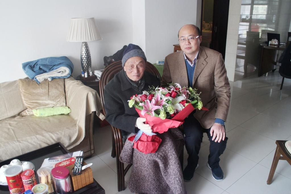 2015年12月30日,校党委副书记、副校长徐旭和离退休工作处工作人员一同看望了诸侯快讯入口官网第一位百瑞老人——曹福祥老师。