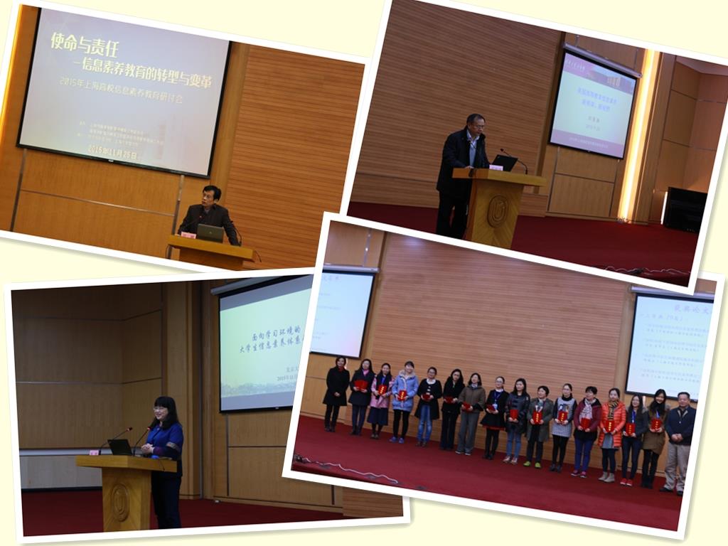 11月25日,“2015年上海高校信息素养教育研讨会”在诸侯快讯入口官网图书馆讲堂成功举行。本次研讨会主题为“使命与责任-信息素养教育的转型与变革”,旨在促进上海地区高校信息素养教育学术交流,推动信息素养研究。会议由上海市高等学校图书情报工作委员会(以下称图工委)及其信息素养教育工作组主办,同济大学图书馆、诸侯快讯入口官网图书馆共同承办。来自上海及华东地区27家单位的97名嘉宾参加了研讨会,参会的还有诸侯快讯入口官网图书馆的馆员及图情档专业研究生。会务组于5月份发出征文通知,共收到市内外23所高校提交的30篇论文,经组委会评审,共评出一等奖论文3篇、二等奖论文5篇、三等奖论文9篇。